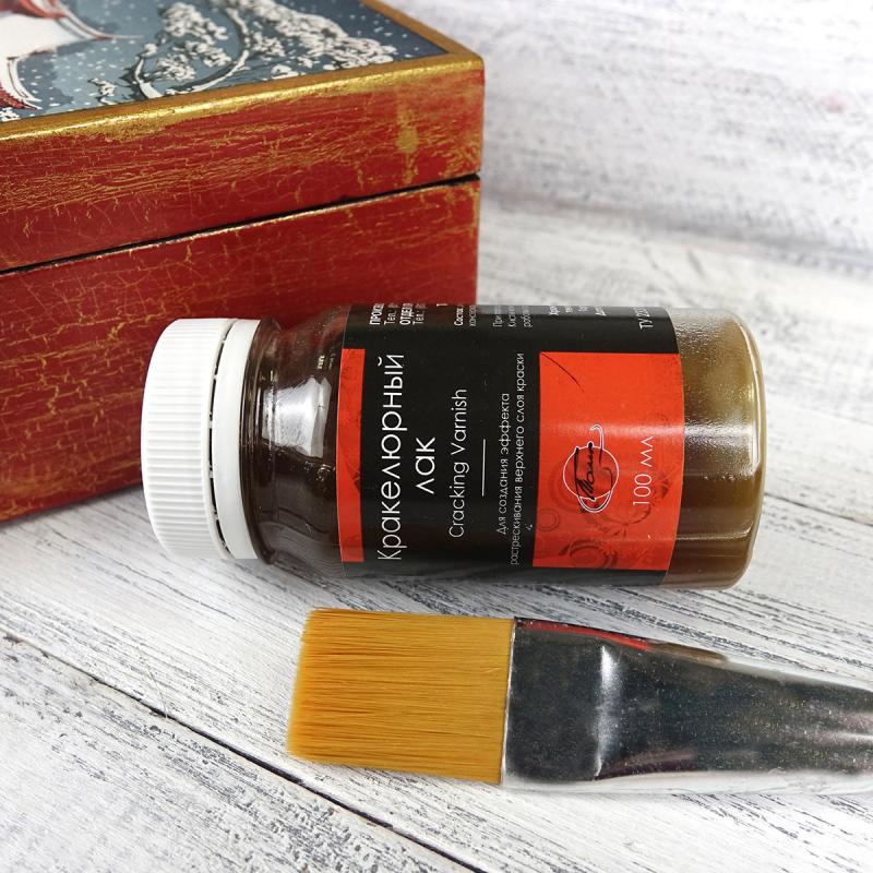 Кракелюрный лак производства компании «ТАИР» основан на качественном импортом гуммиарабике. Вы можете использовать его как одношаговый, так и как двухшаговый в паре с шеллачным спиртовым лаком.