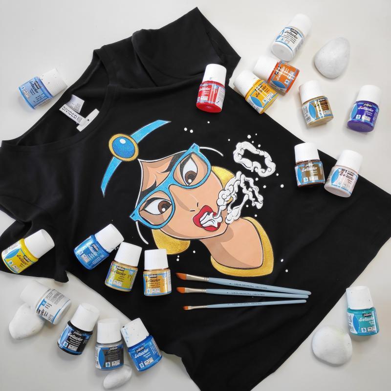 Главный и важный плюс в красках Pebeo - роспись получается очень мягкой и приятной на ощупь на ткани, даже в три-четыре слоя краски.