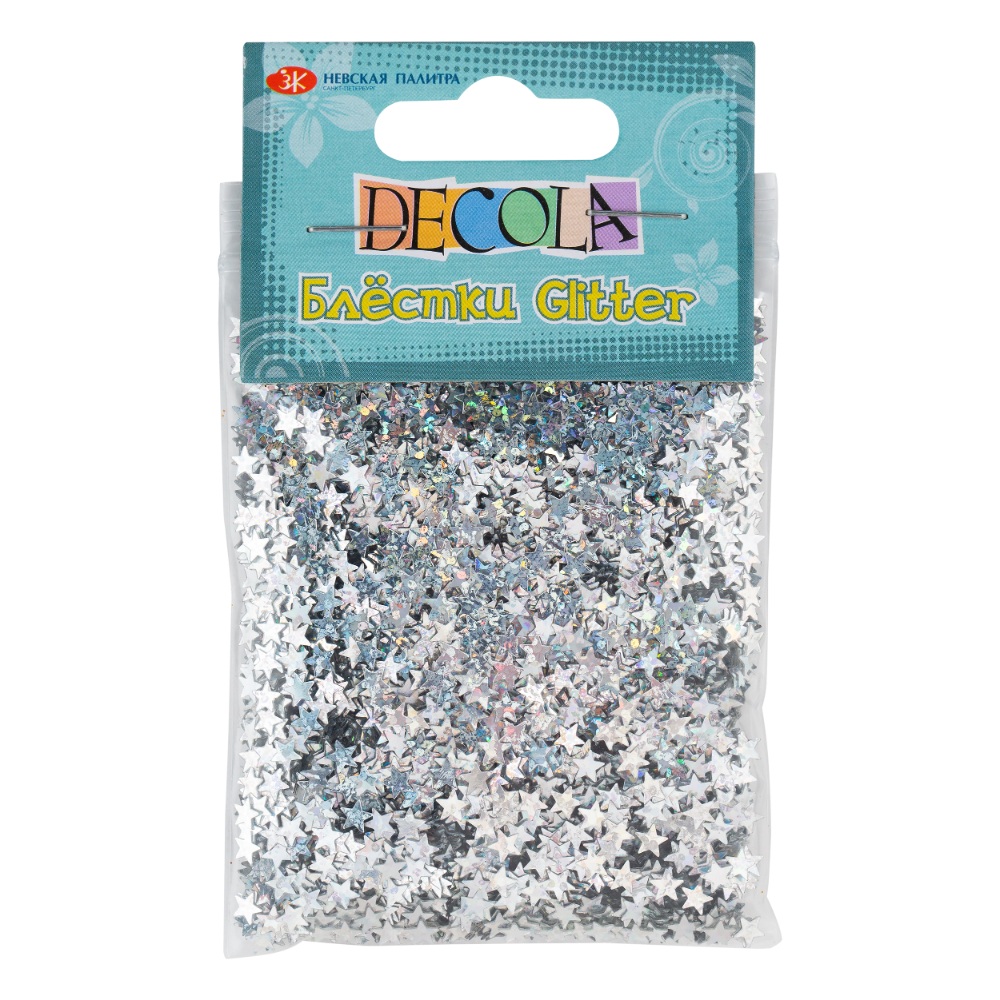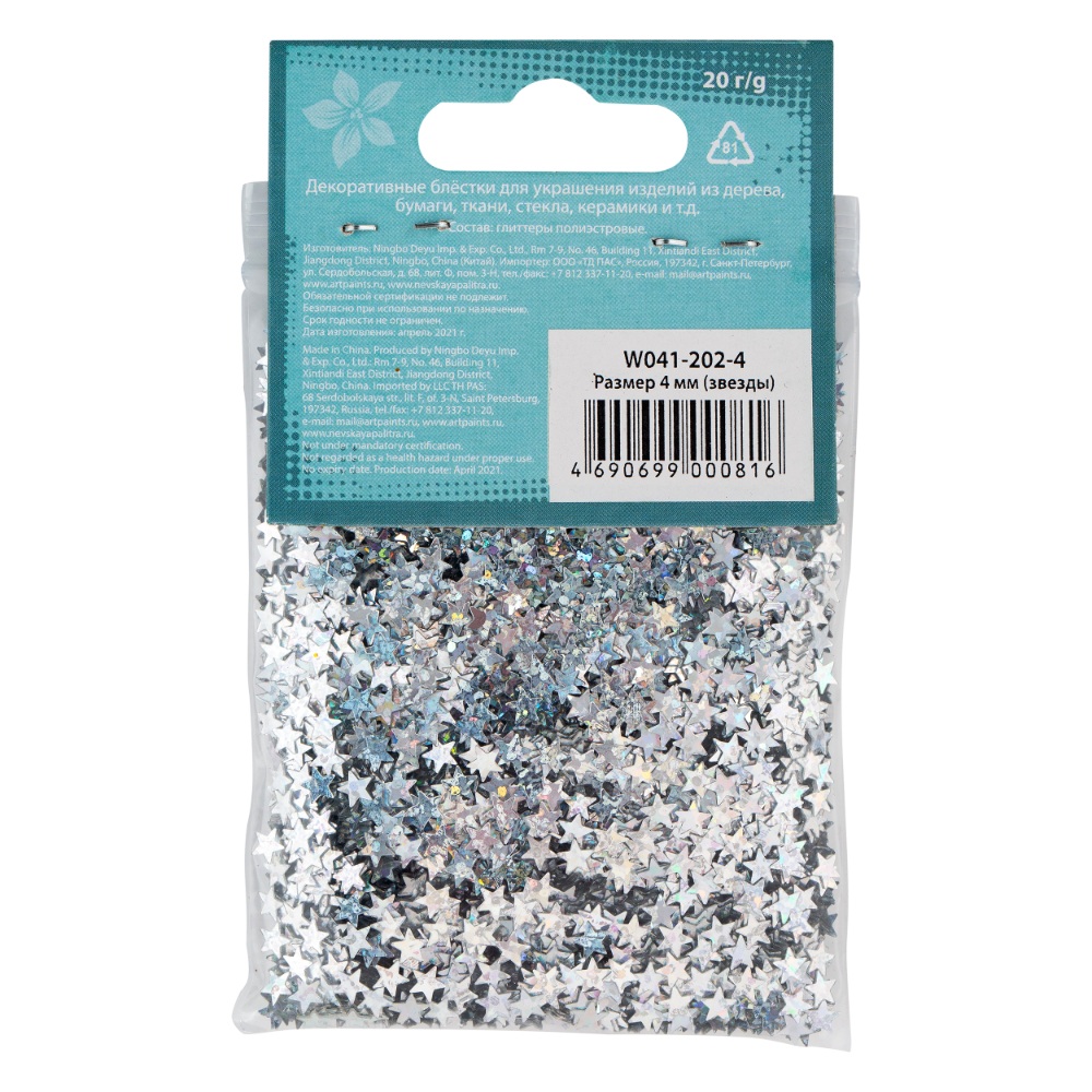 —Блестки декоративные DECOLA звезды размер 4 мм, 20 г, серебро радужное NP-W041-202-4