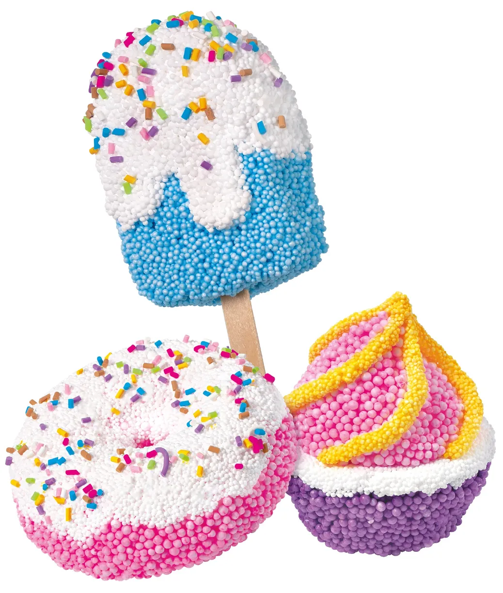 шариковый пластилин (8 пакетиков), посыпка конфетти – 1 пакетик, палочка для мороженого