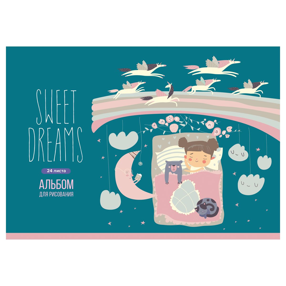 Альбом для рисования BG «Сладкие мечты» формата А4 (205 x 295 мм) поставляется в четырёх вариантах дизайна ассорти.