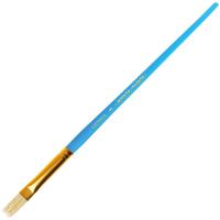Кисть плоская №8 «Мульти-Пульти» с волосом из щетины отлично подходит для детей с начальным и средним уровнем подготовки. Она предназначена для работы с плотными красками, а также может использоваться для аппликаций с клеем. Прочная и необычная пластиковая ручка не боится воды и легко моется.