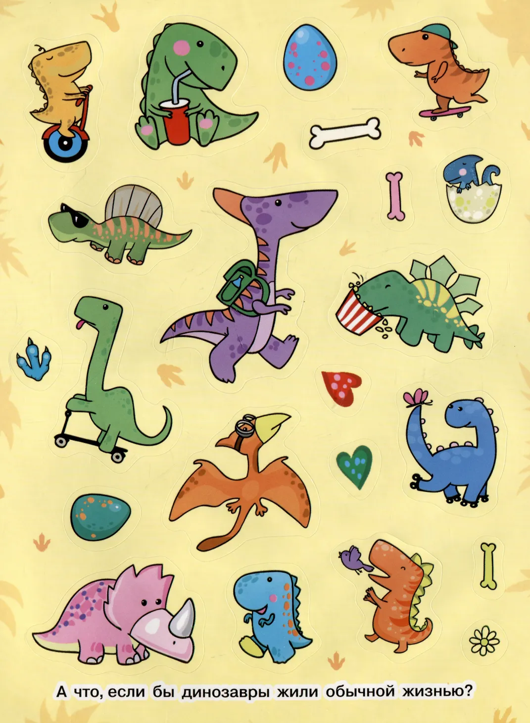 А что, если бы динозавры жили обычной жизнью: ходили в школу, катались на скейте, отдыхали в шезлонге?! Современные, яркие, смешные образы динозавриков поднимут настроение! Наклейками можно украсить ежедневник, тетради, скетчбук, телефон и многое другое!