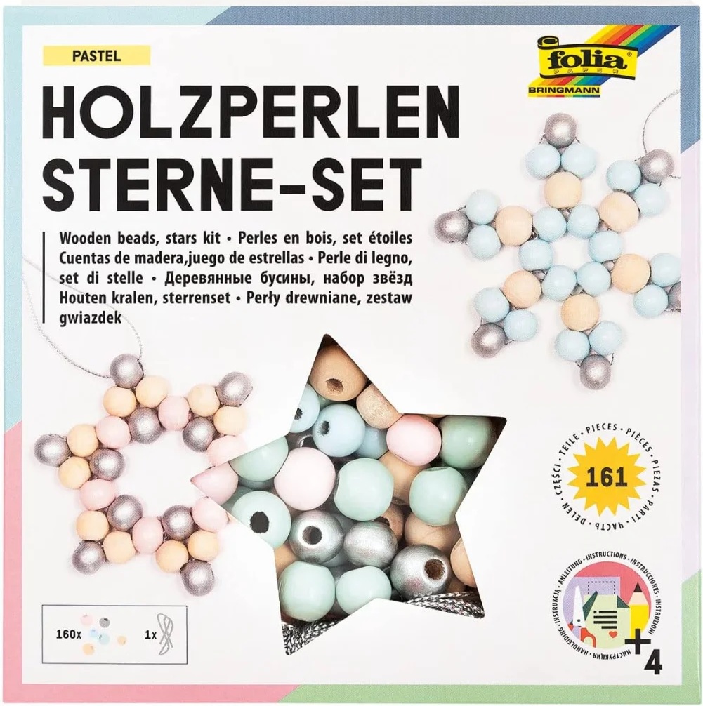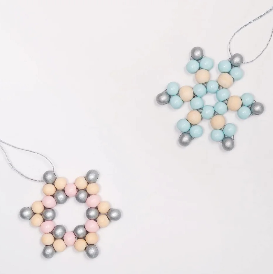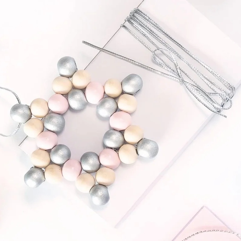 Набор для творчества: Рождественские звезды из деревянных бусин — создайте уютный праздничный декор своими руками.