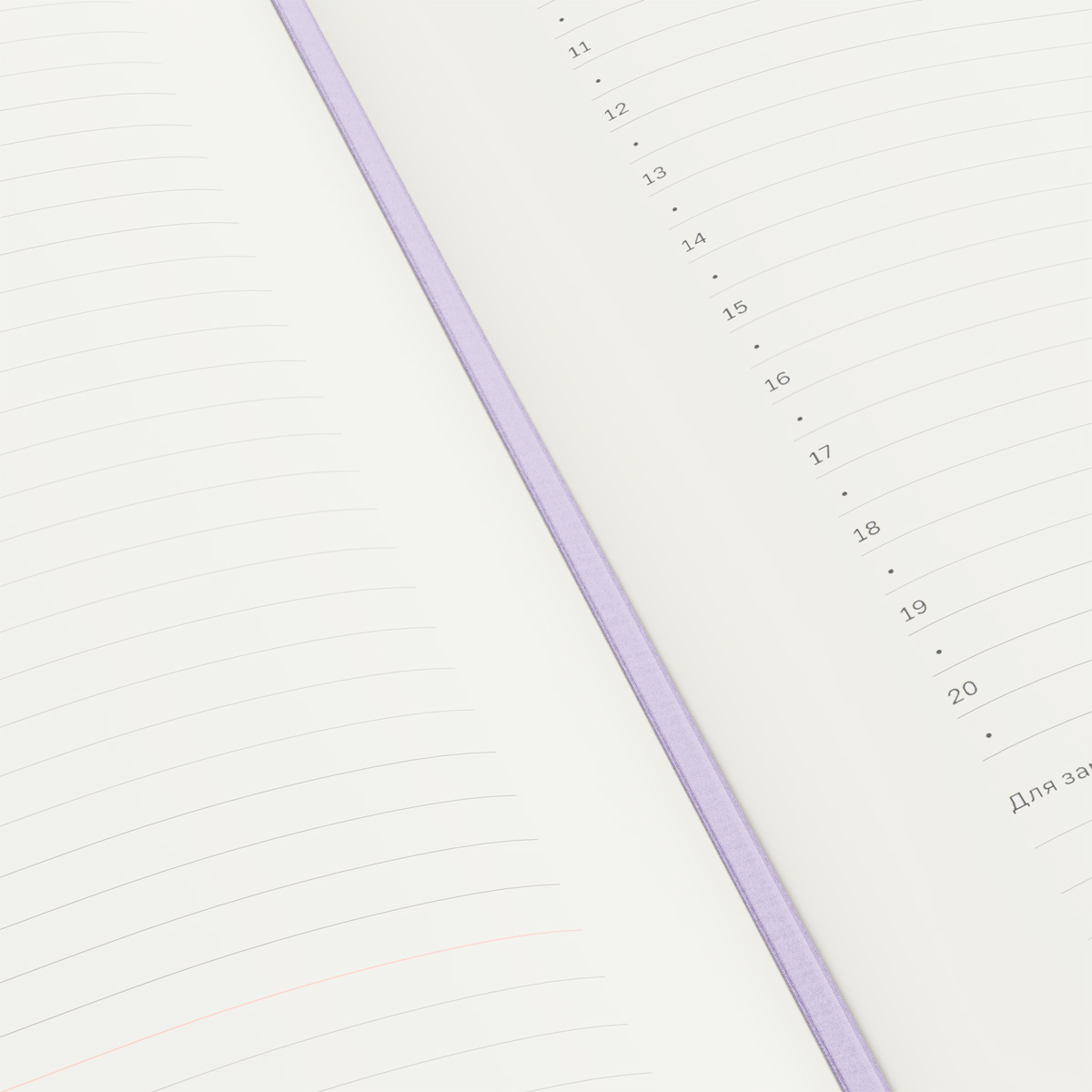 - Продуманные детали: перфорированные уголки и закладка-ляссе делают использование ежедневника максимально комфортным.