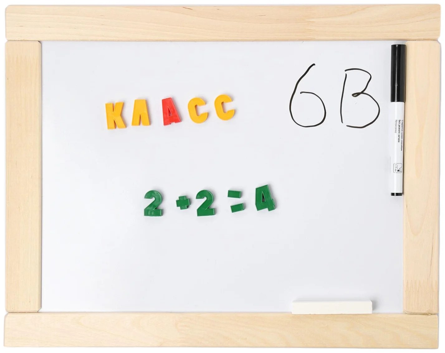 - Две рабочие поверхности: Маркерная сторона предназначена для рисования водными маркерами и работы с магнитами, а меловая — для рисования классическими мелками.