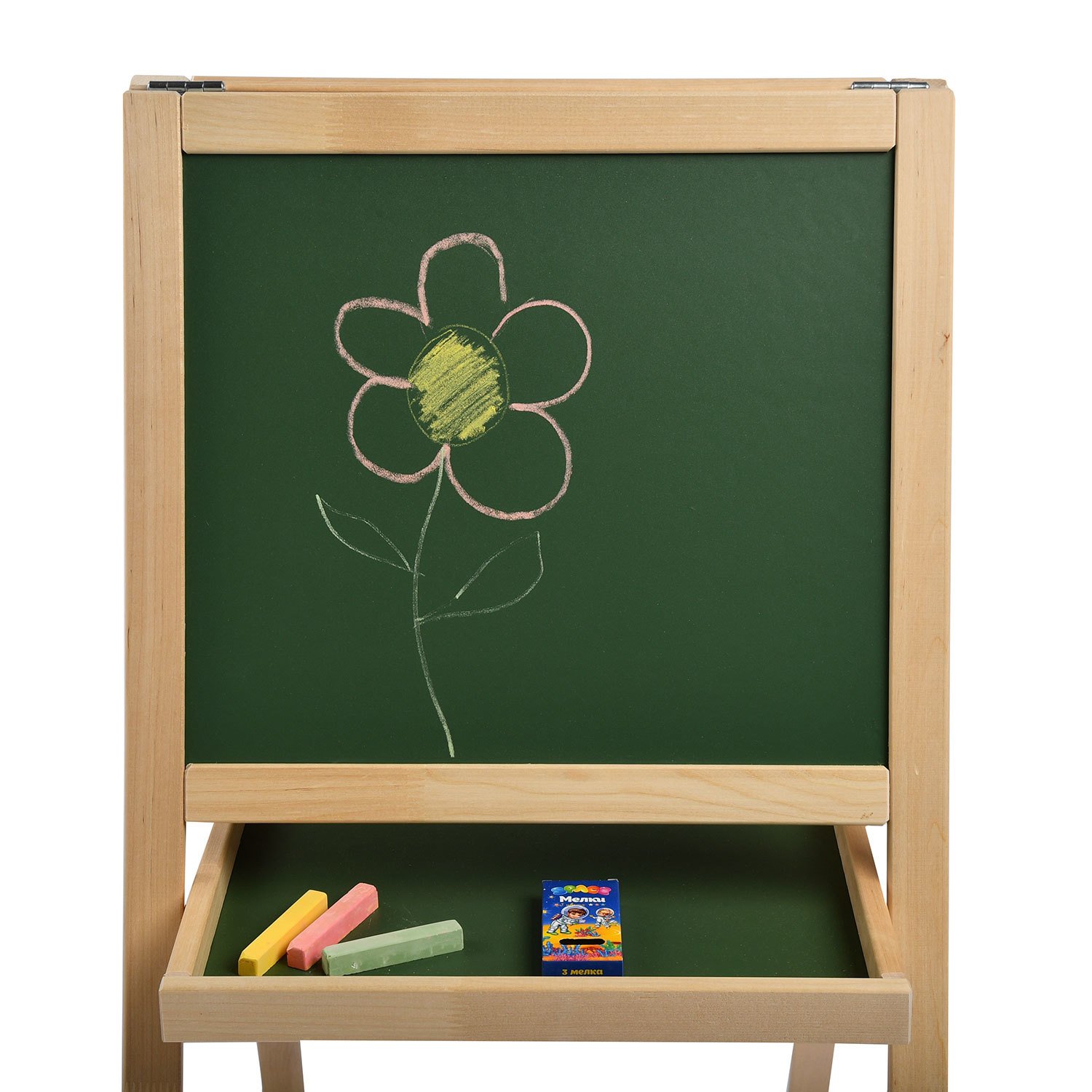 - Меловая сторона: Поверхность для классического рисования мелками, имитирующая школьную доску.