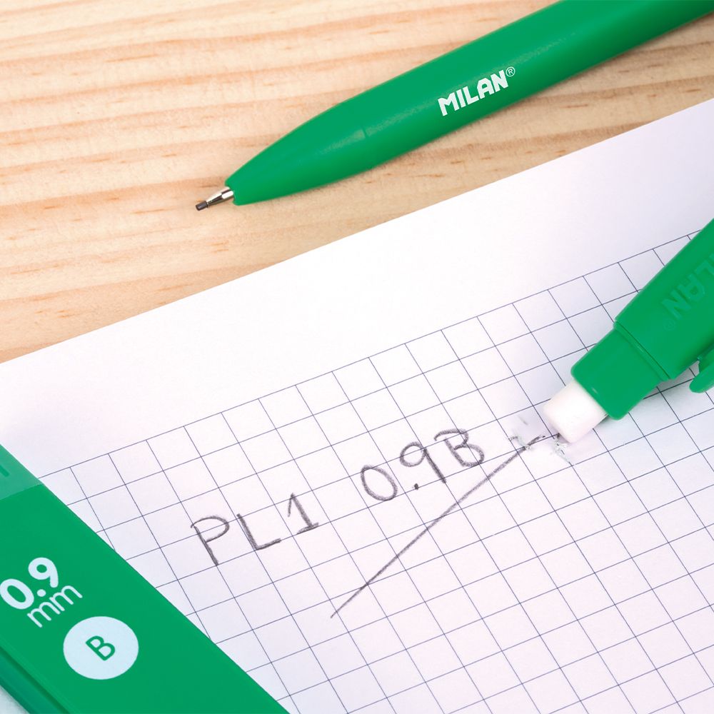 PL1 — это инновационный инструмент, сочетающий в себе функции механического карандаша и ластика. Модель оснащена очень длинным ластиком MILAN с удобным поворотным механизмом. В качестве грифеля используется толстый и мягкий грифель B толщиной 0.9 мм. Оригинальный дизайн карандаша создан собственным отделом R+D компании MILAN.
