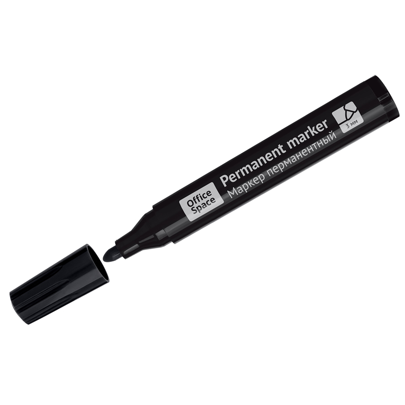 Маркер перманентный OfficeSpace "Contact" 3 мм, пулевидный, без клипа, черный