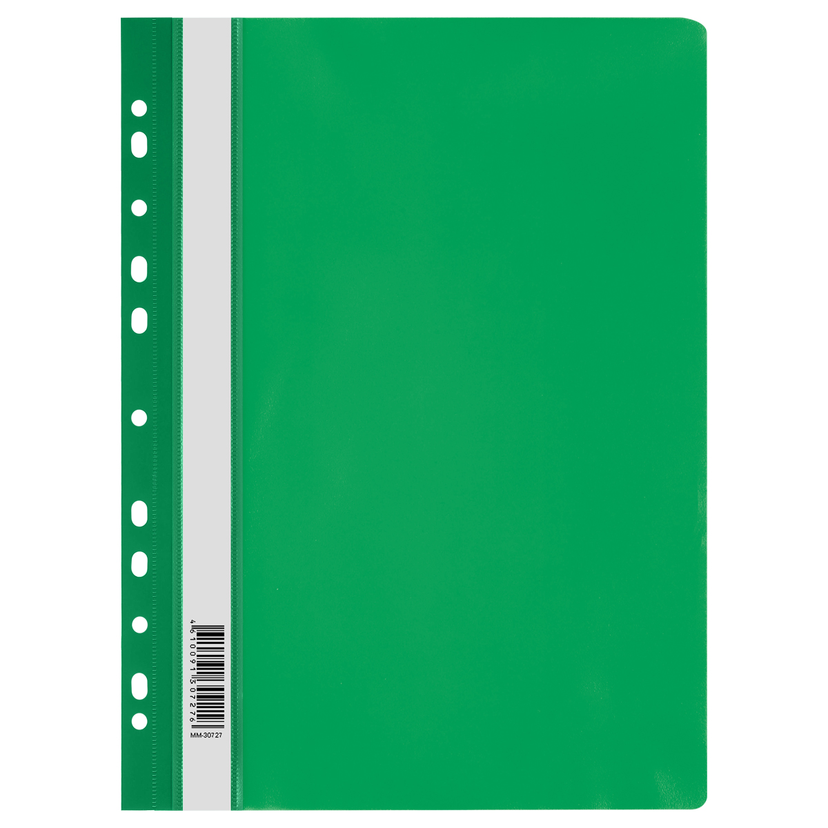 Папка-скоросшиватель «СТАММ» формата А4 предназначена для транспортировки, хранения и систематизации документов. Изделие размером 240×310 мм имеет зеленый цвет с прозрачным верхним листом.