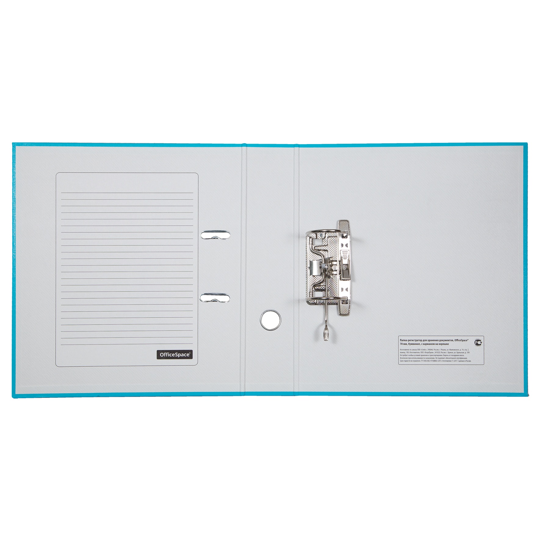 Папка-регистратор для хранения документов, металлический арочный механизм, покрытие бумвинил, карман на корешке папки.
