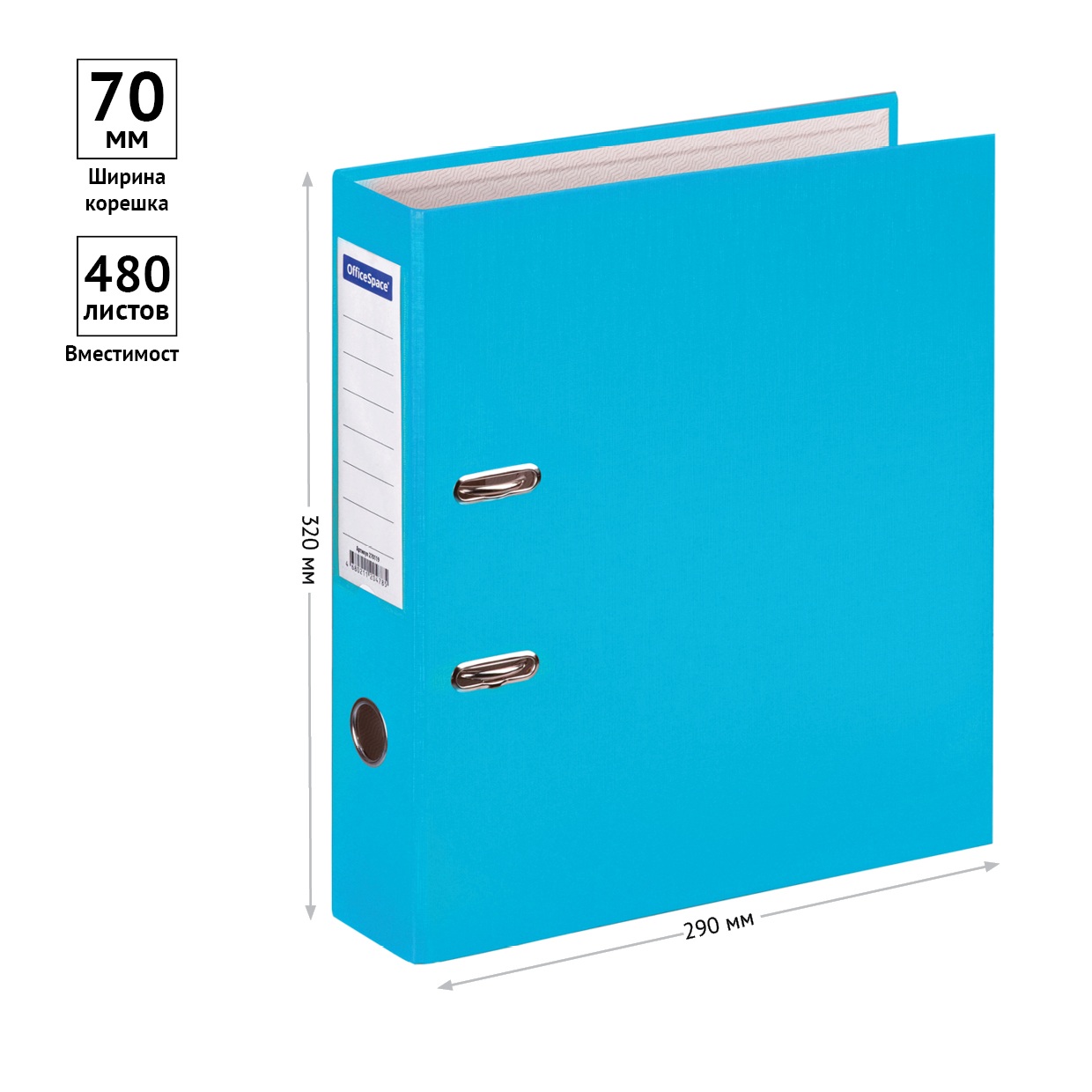 Папка-регистратор A4 OfficeSpace 70 мм, бумвинил, с карманом на корешке