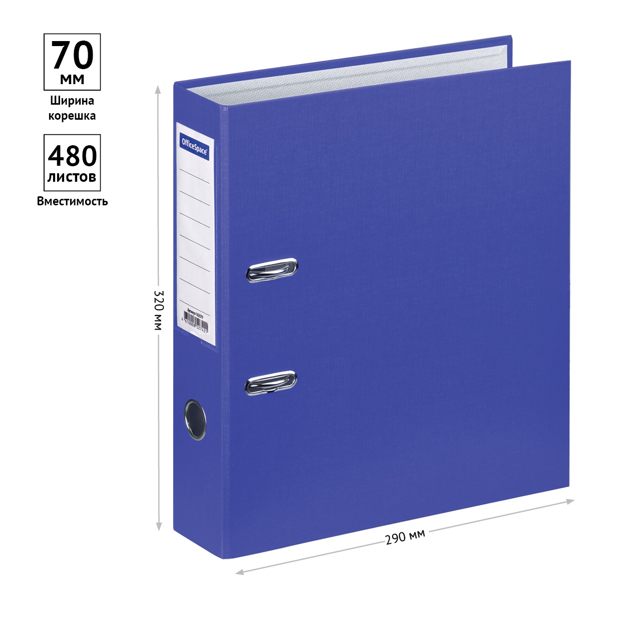 Папка-регистратор A4 OfficeSpace 70 мм, бумвинил, с карманом на корешке
