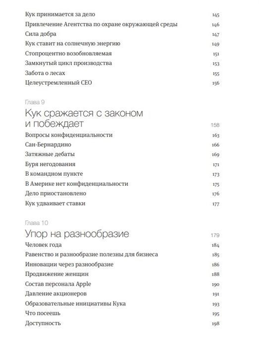 Под твердым руководством Тима Кука Apple вплотную занялась вопросами возобновляемой энергии, организацией цепочек сбыта, справедливых в плане труда и не наносящих вреда экологии, обеспечением конфиденциальности пользователей и созданием продуктов, легко поддающихся переработке. Тим Кук уверенно ведет компанию в новую эру процветания.