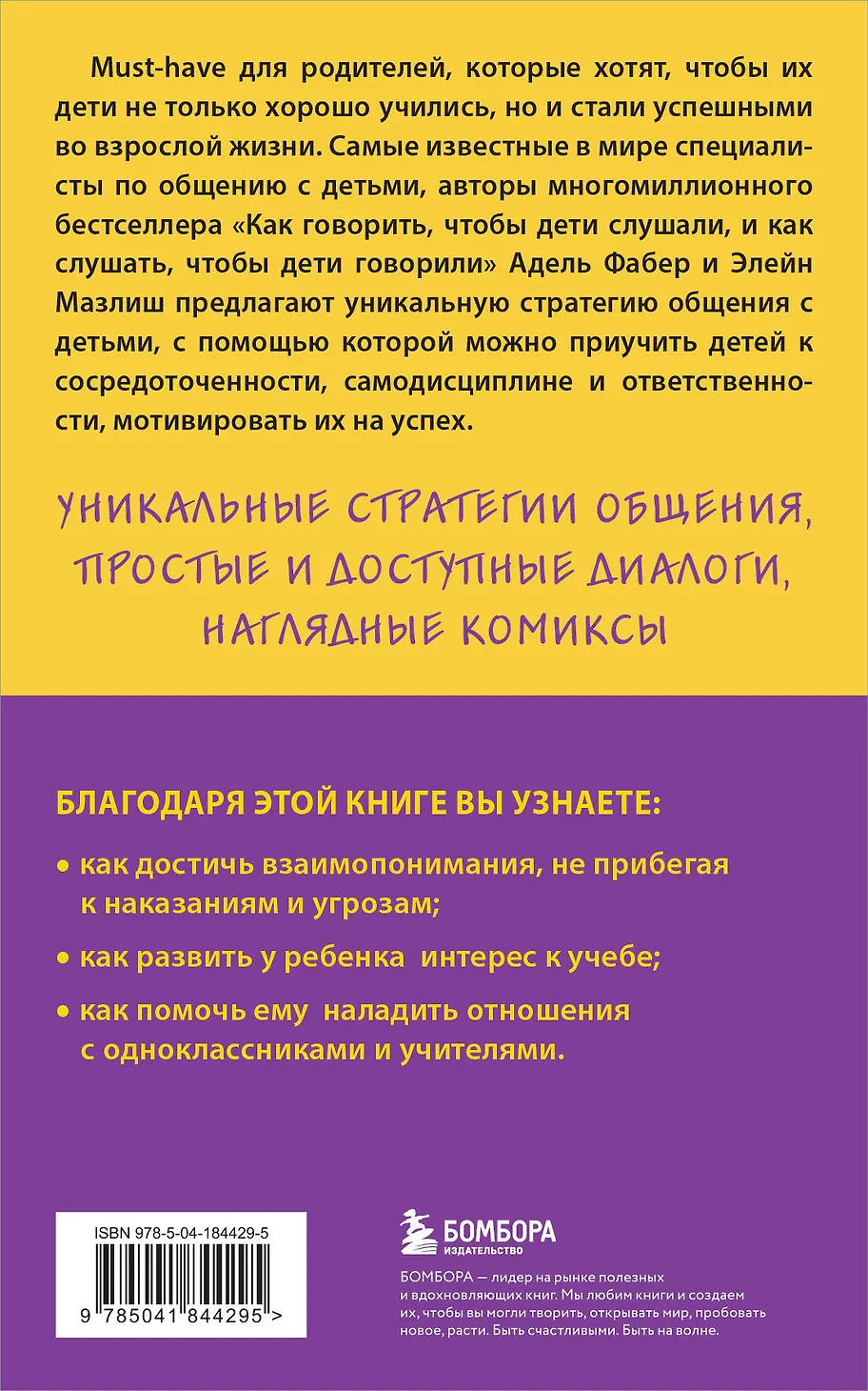 Must-have для родителей, которые хотят, чтобы их дети не только хорошо учились, но и стали успешными во взрослой жизни. Авторы многомиллионного бестселлера «Как говорить...» предлагают уникальную стратегию общения с детьми.
