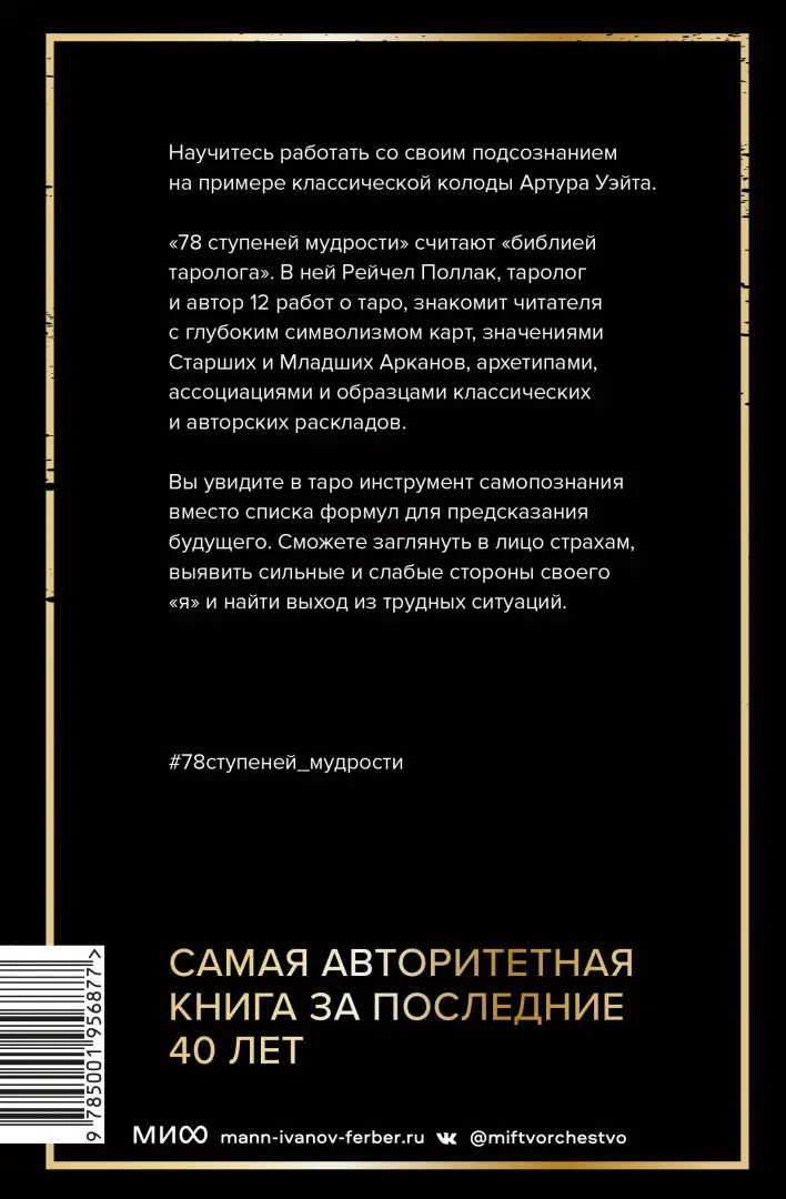 Изначально "Семьдесят восемь ступеней мудрости" вышла в двух частях, в 1980 и 1983 годах. С тех пор книга постоянно переиздавалась. Когда она впервые увидела свет, то сильно отличалась от остальных книг по Таро. Это был не список формул для предсказания будущего, оккультных диаграмм или туманных отсылок. В центре внимания были толкования карт - не просто для предсказания, а скорее как способ познания себя и, более того, духовных чудес жизни.