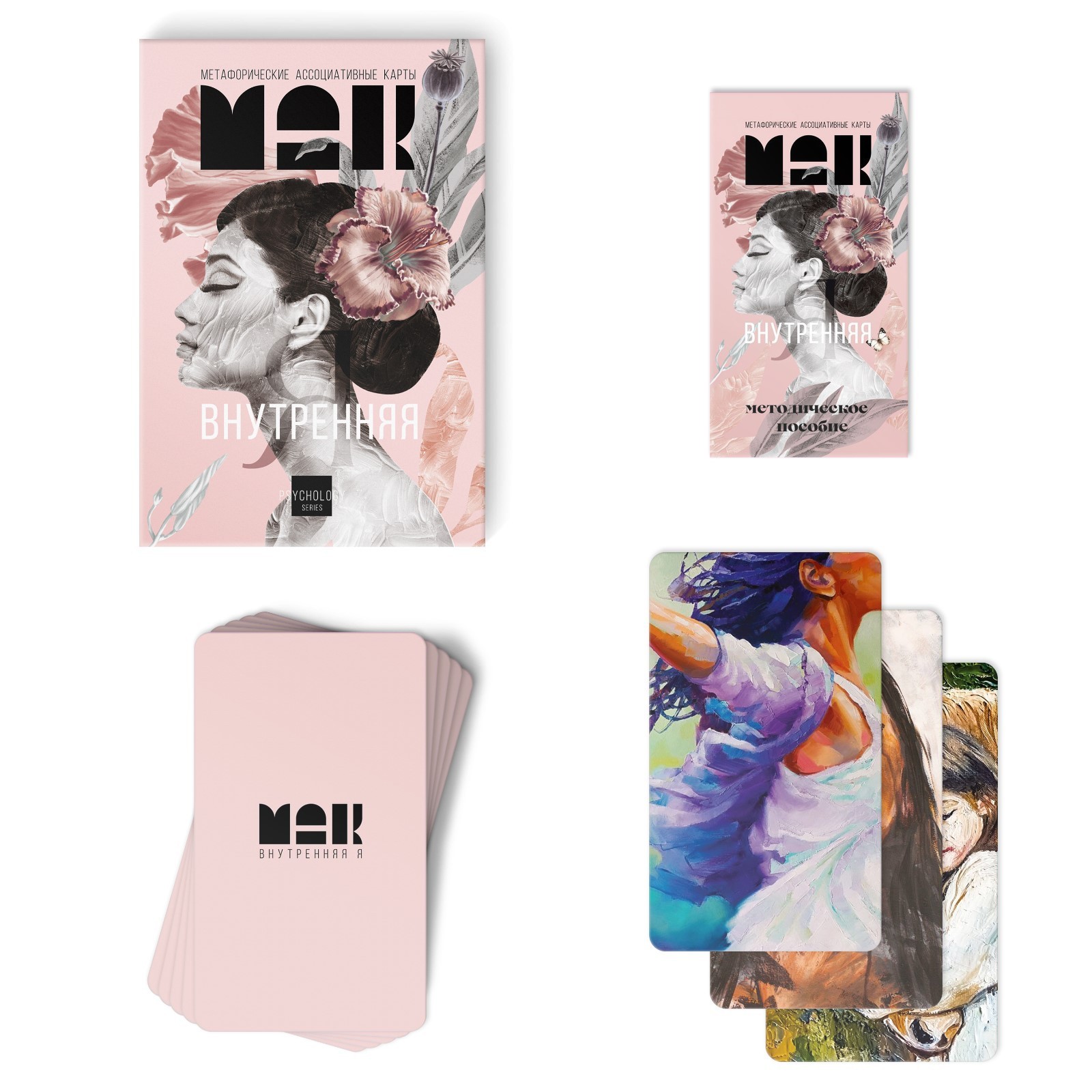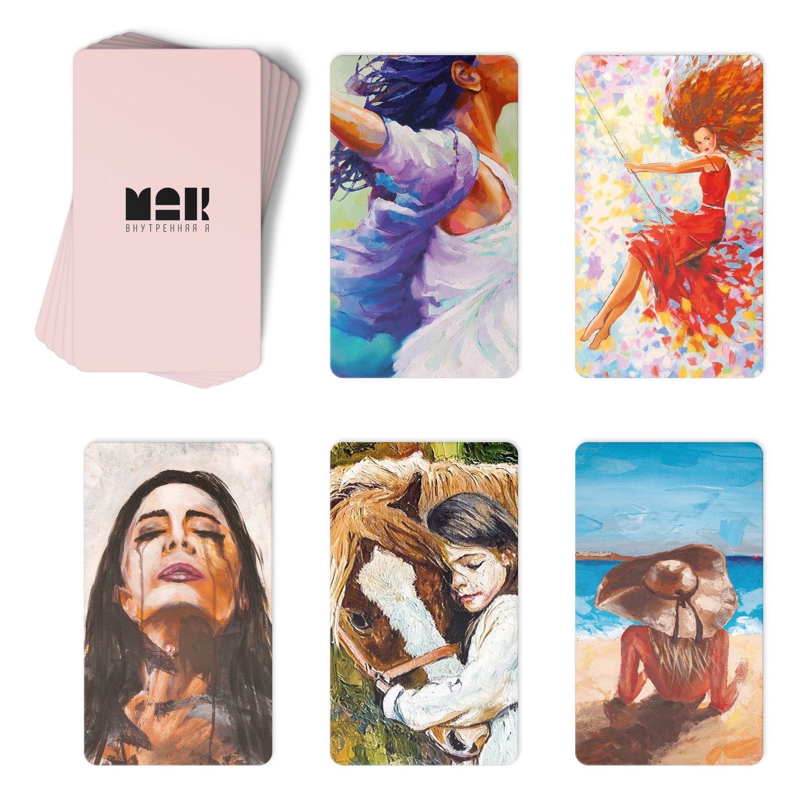 Метафорические ассоциативные карты (МАК) – это набор картинок, которые помогут заглянуть вглубь подсознания и получить ответы на интересующие вопросы. «Внутренняя Я» – это колода о принятии себя и поиске жизненного пути, предназначенная для девушек и женщин.