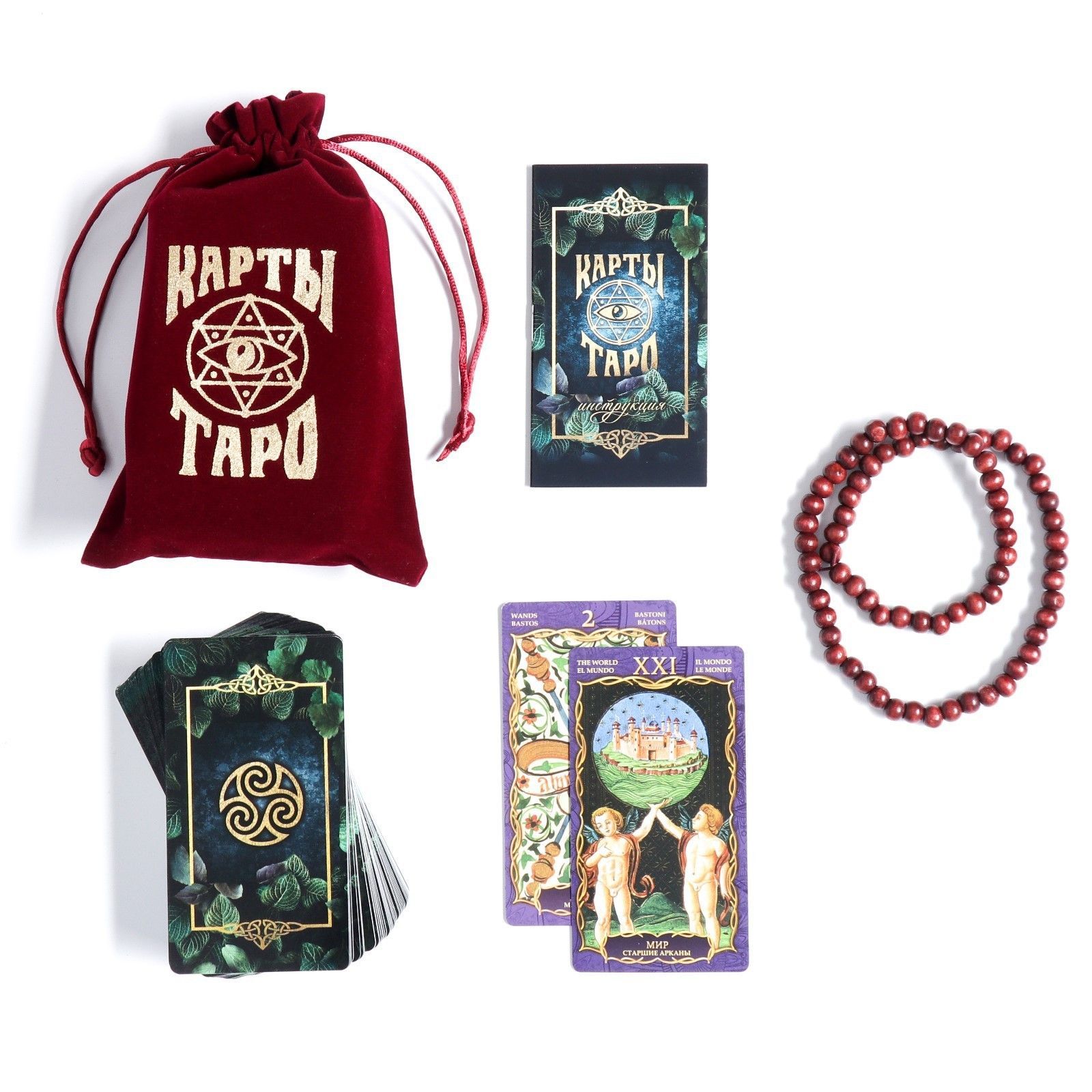 Карты Таро гадальные, в бархатном мешке + четки