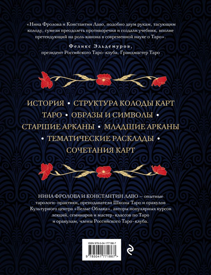 Это самый логичный и понятный учебник по искусству чтения карт Таро от тарологов и преподавателей с многолетним опытом, членов Российского Таро-клуба Нины Фроловой и Константина Лаво. В этой книге есть все, что нужно, чтобы освоить теорию и практику работы с картами Таро «с нуля»! Для того чтобы увидеть будущее, прояснить скрытые причины и следствия событий и тайные мотивы больше не нужно владеть сверхъестественными способностями. Логика, точность и системный подход авторов помогут получить ответы на все интересующие вопросы.