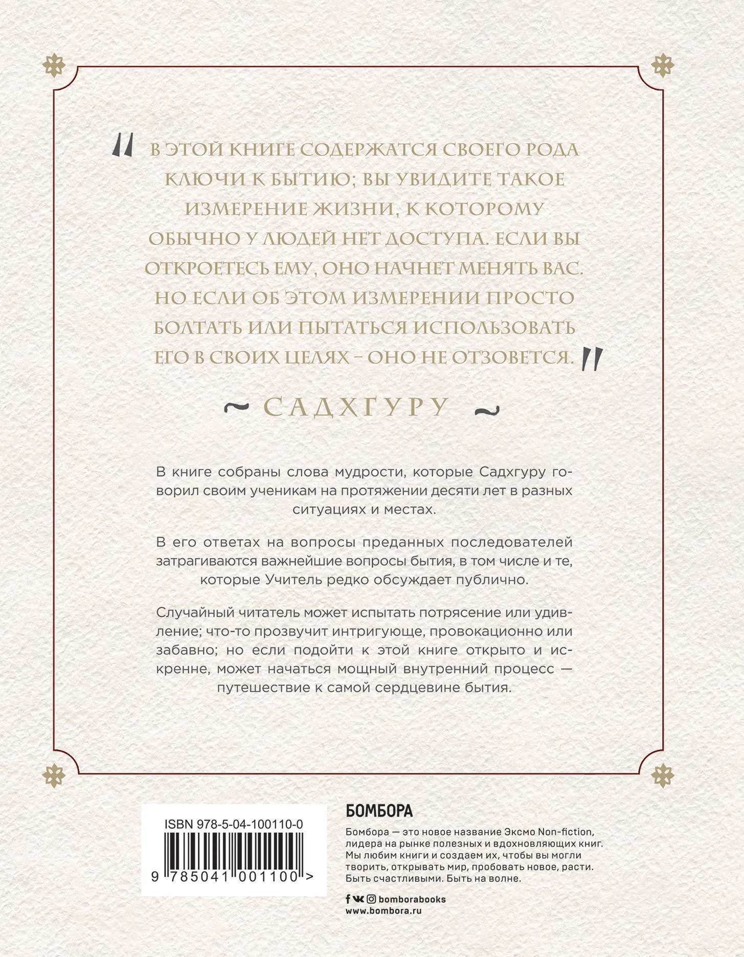 Книга представляет собой сборник ответов Садхгуру на сотни вопросов, которые ученики задавали ему на протяжении многих лет в разных странах. Здесь Учитель дает подробные пояснения на самые разные темы — в том числе те, которых крайне редко касается на широкой публике и которые могут удивить или даже шокировать. Вряд ли найдется существенный вопрос относительно человеческого бытия, в книге не затронутый.