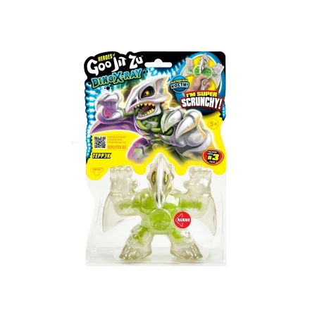 Тянущаяся фигурка Террэк Дино Икс-Рэй Гуджитсу приятна на ощупь, растягивается в 3 раза.Игрушка высотой 12 см с зелеными костями, внутри наполнена гелем с пузырьками.