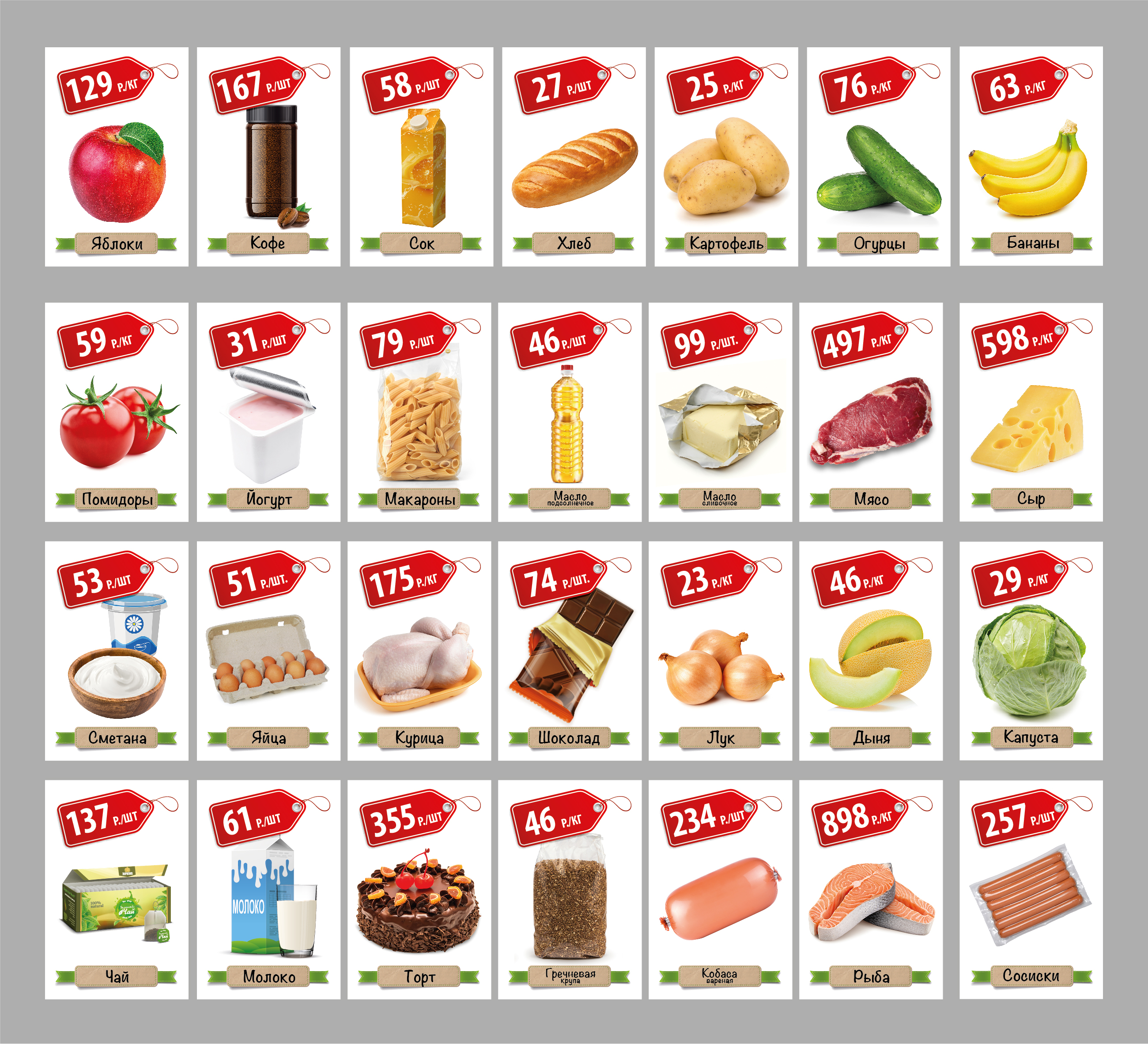 - Вариант 1. Купи. Разложите перед ребёнком карточки товаров и попросите купить всё — начиная с самых дешёвых и заканчивая самыми дорогими. Малышу потребуется самостоятельно подобрать нужное количество купюр и монеток для оплаты без сдачи.