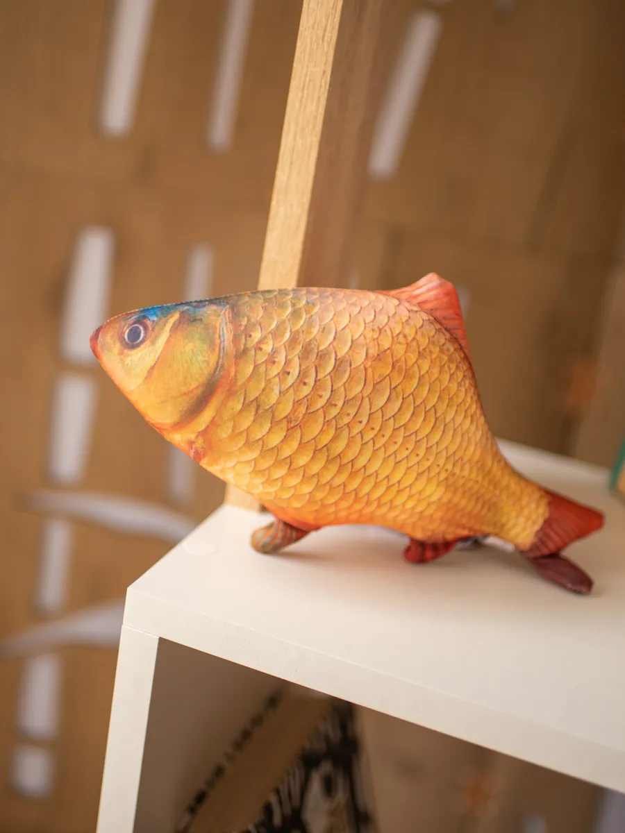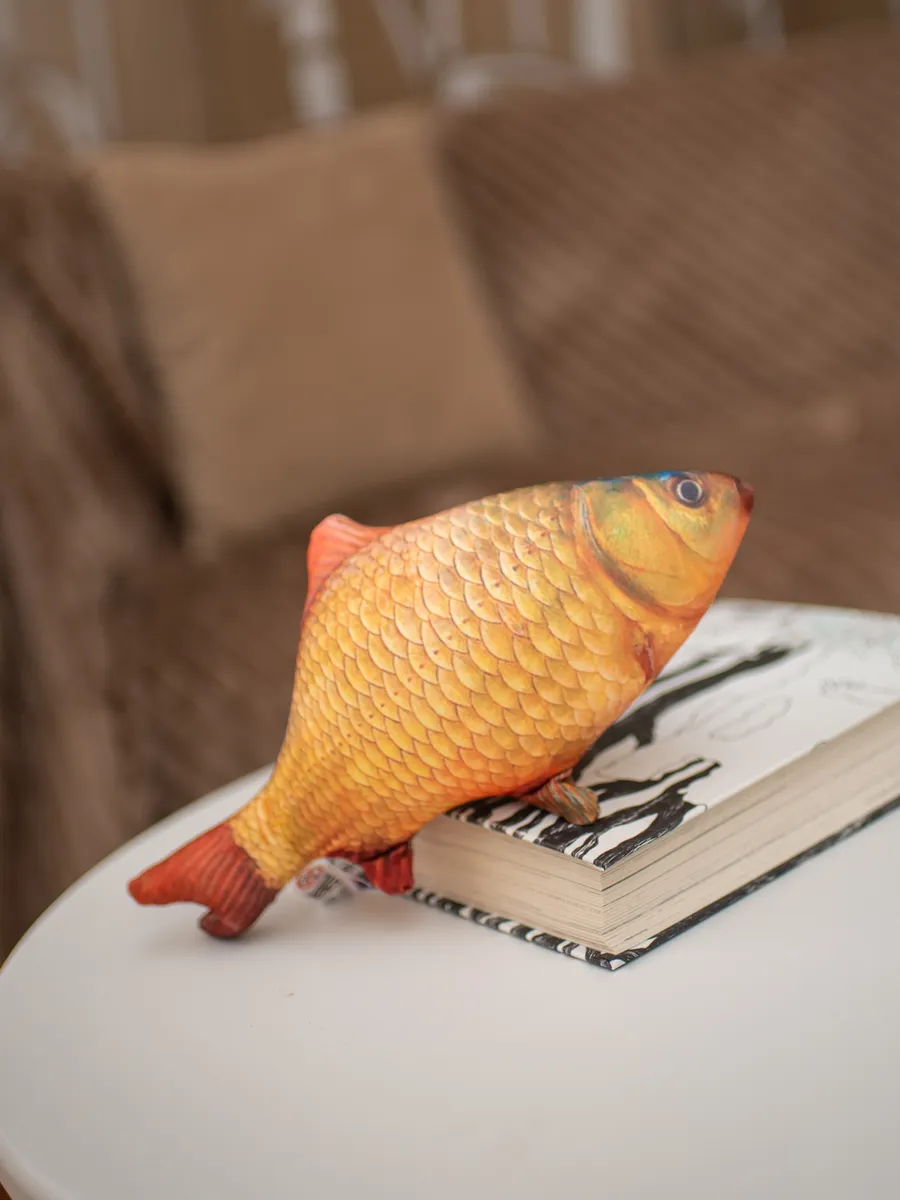 - Реалистичный дизайн в виде карася с проработанными деталями привлекает внимание и делает игрушку уникальной;