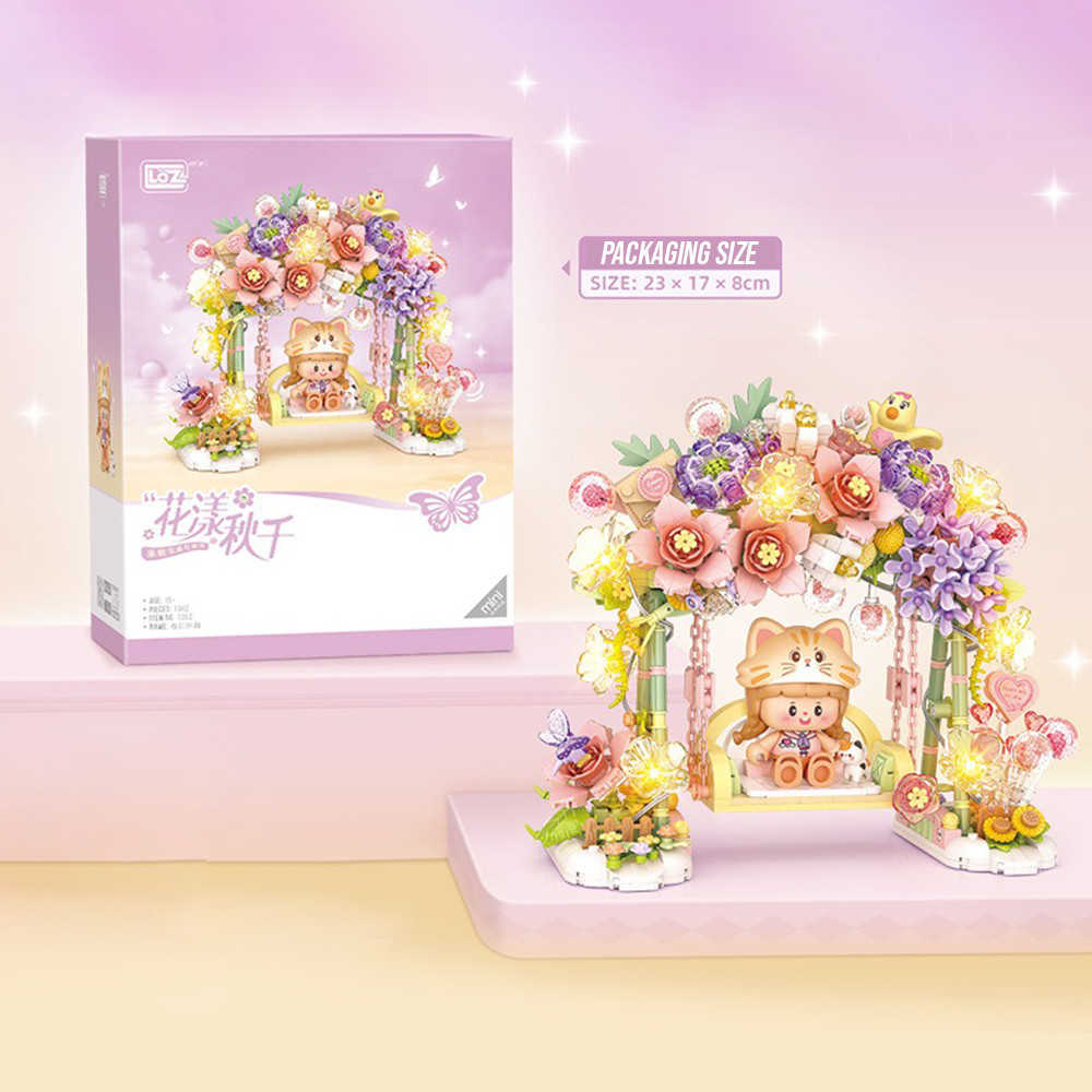 Погрузитесь в мир творчества с набором LOZ «Качели в цветах» (1352_MK), состоящим из 1042 деталей.