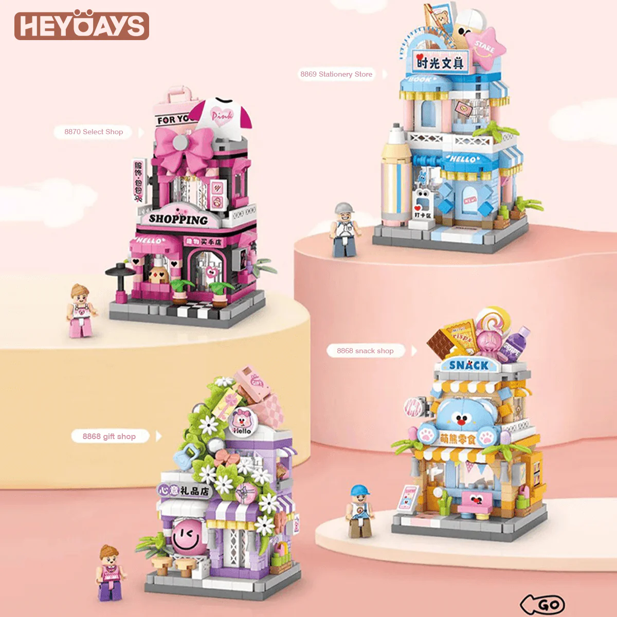 Создайте собственную пастельную торговую улицу с серией LOZ Micro Block. Каждая модель представляет собой уникальный фасад магазина с невероятной детализацией благодаря высокоточным микро-блокам.