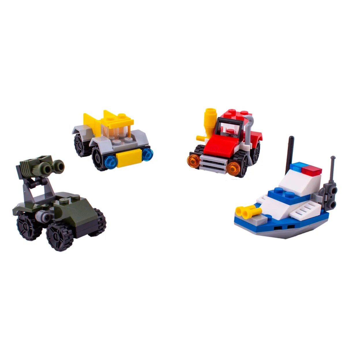 - Каждый набор сделан по образу настоящего транспорта: экскаватора, полицейской машины, такси и др.