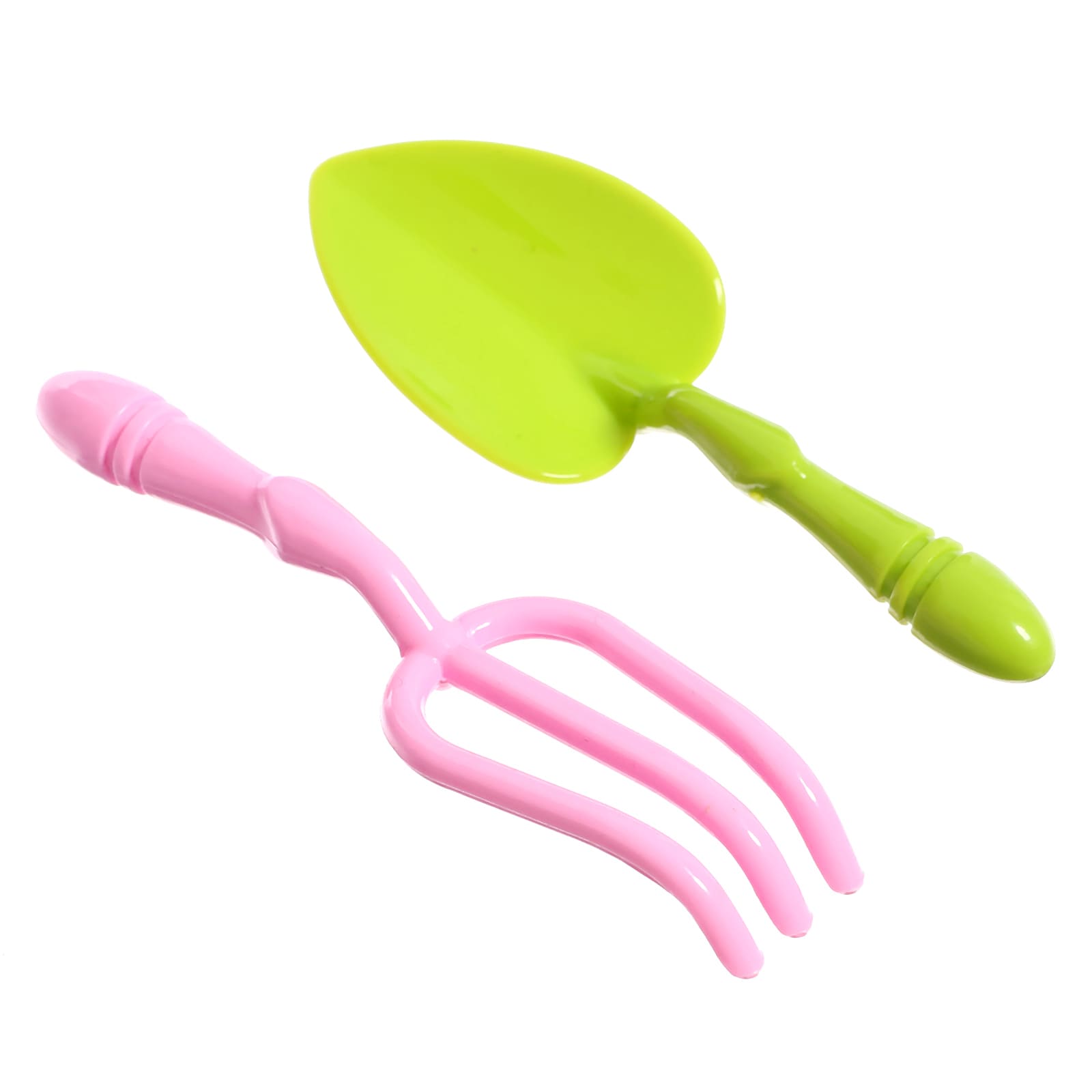 • Инструменты: Лейка (9 × 3,5 × 11 см), Совок (9 × 3 × 3 см), Мотыга (5 × 2,5 × 3,5 см), Лопатка (8 × 2,5 × 1 см).