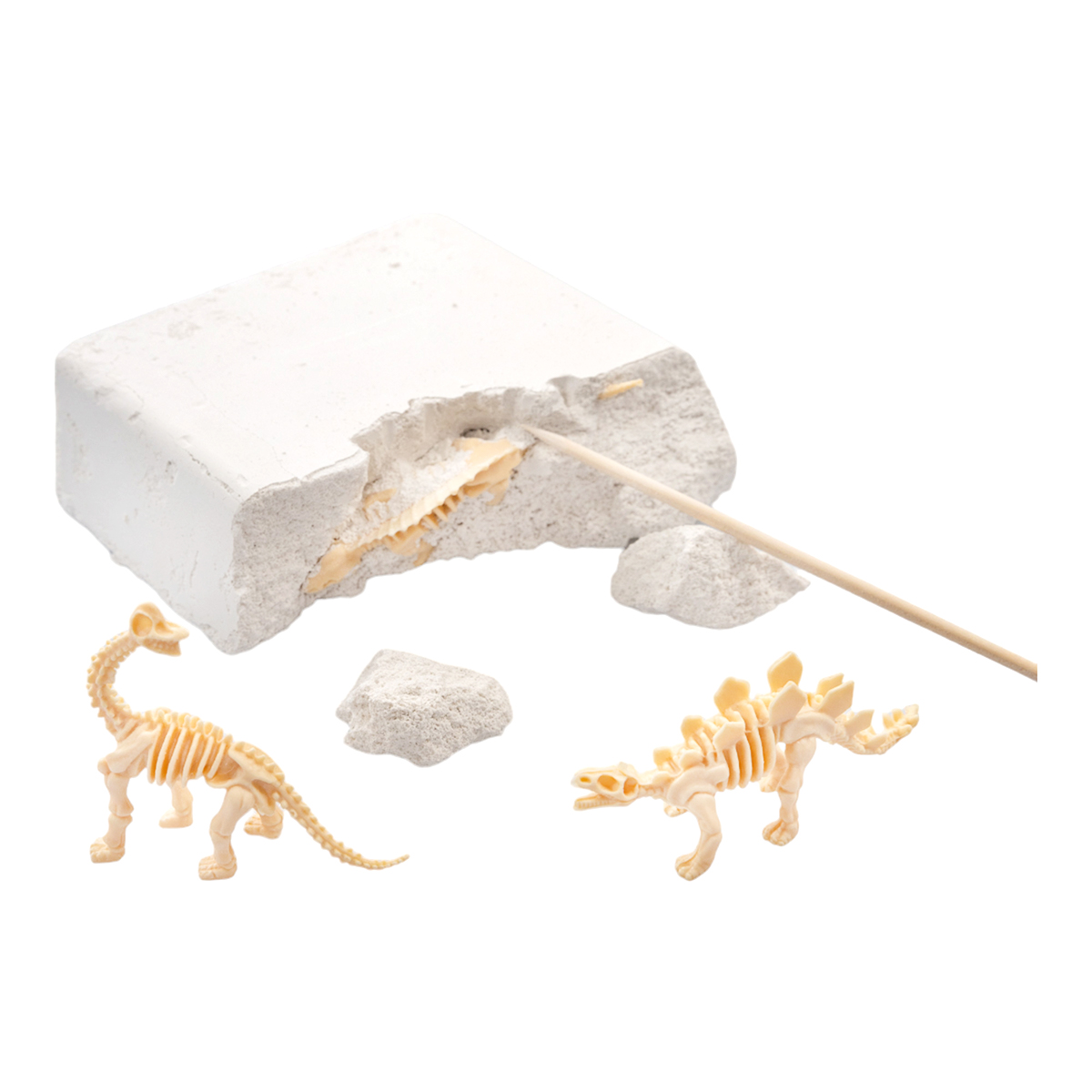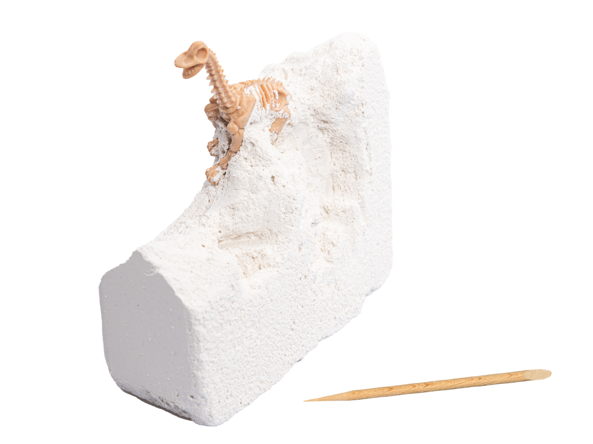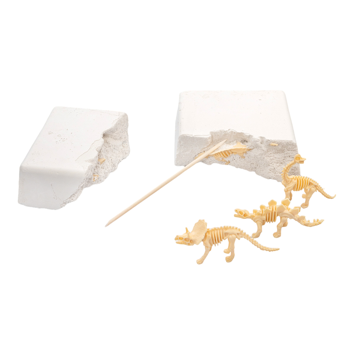 пласт грунта (гипс), деревянный стек, фигурки динозавров 5 шт, буклет с описанием динозавров