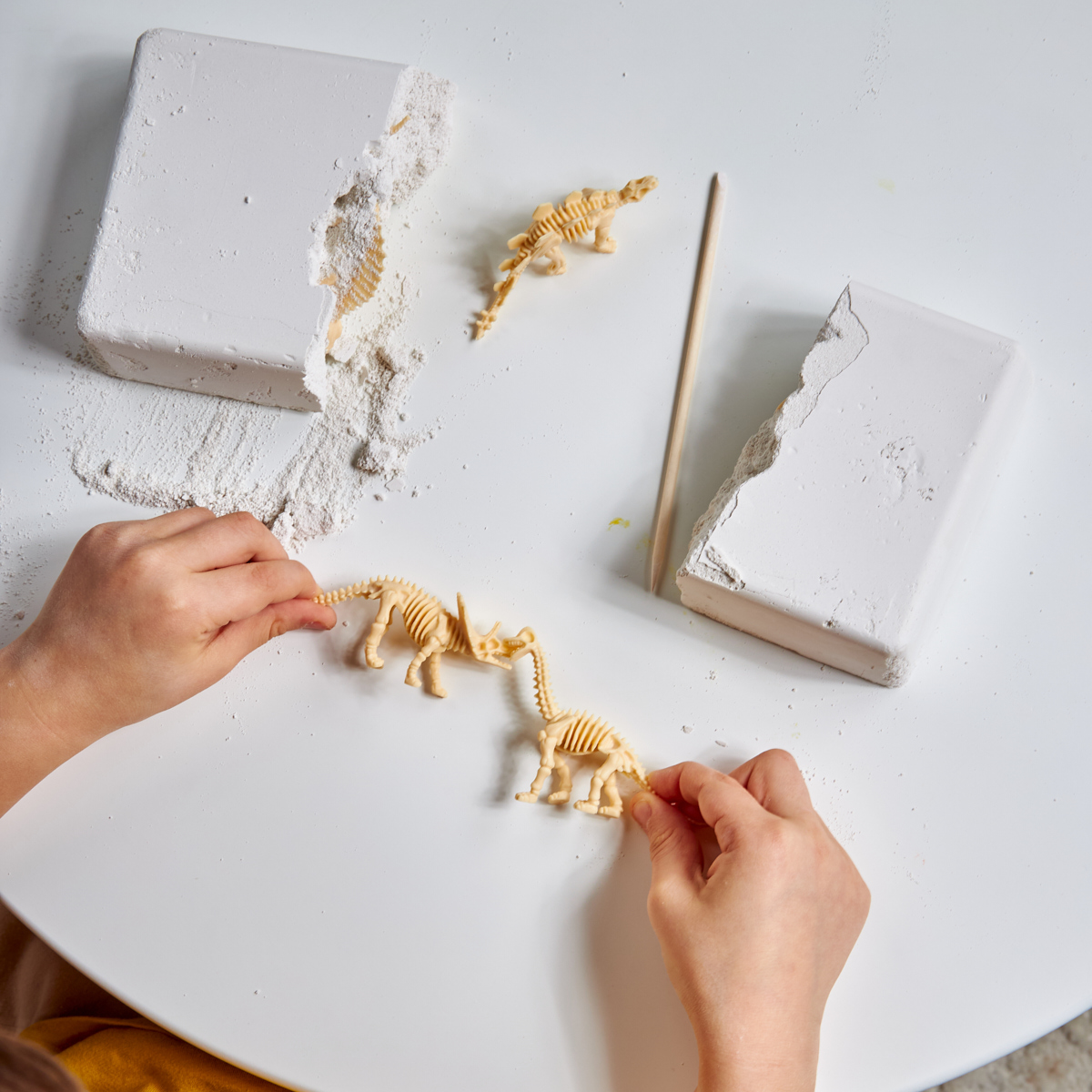 - Аккуратно расчищайте место находки, чтобы извлечь скелеты динозавров целиком.