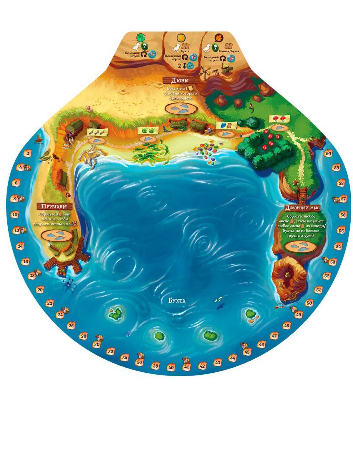 Отправить свободного рабочего можно в любое доступное место. Береговые локации приносят ресурсы и карты. Островные локации тоже приносят ресурсы с картами, и порой бывают более выгодными, однако они могут быть недоступны из-за высоких приливов. На причалах можно сбрасывать карты с руки в обмен на ресурсы, а на дозорном мысе в обмен на новые карты. Ещё можно отправить рабочего на карту локации в вашем городе, чтобы применить её свойство, а также в дюны для получения пергамента.