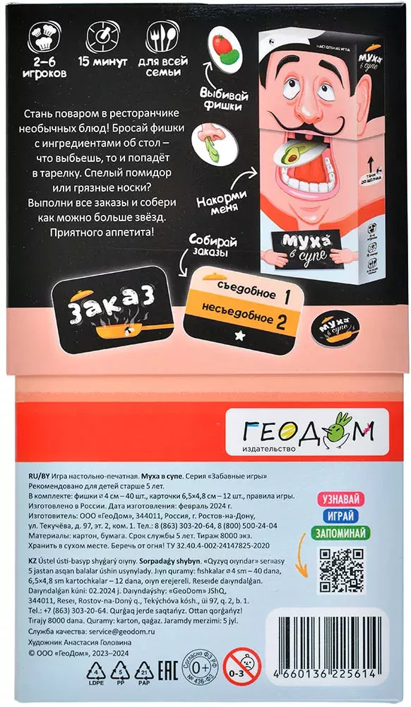 Основой игры стали кэпсы (сотки, pog) – фишки, напоминающие популярные развлечения 90-х. Игроки бросают фишки, собирают нужные ингредиенты и выполняют заказы, а затем… кормят шефа! Ведь коробка игры – это не просто упаковка, а интерактивный элемент: собранными сотками можно буквально "угостить" повара.