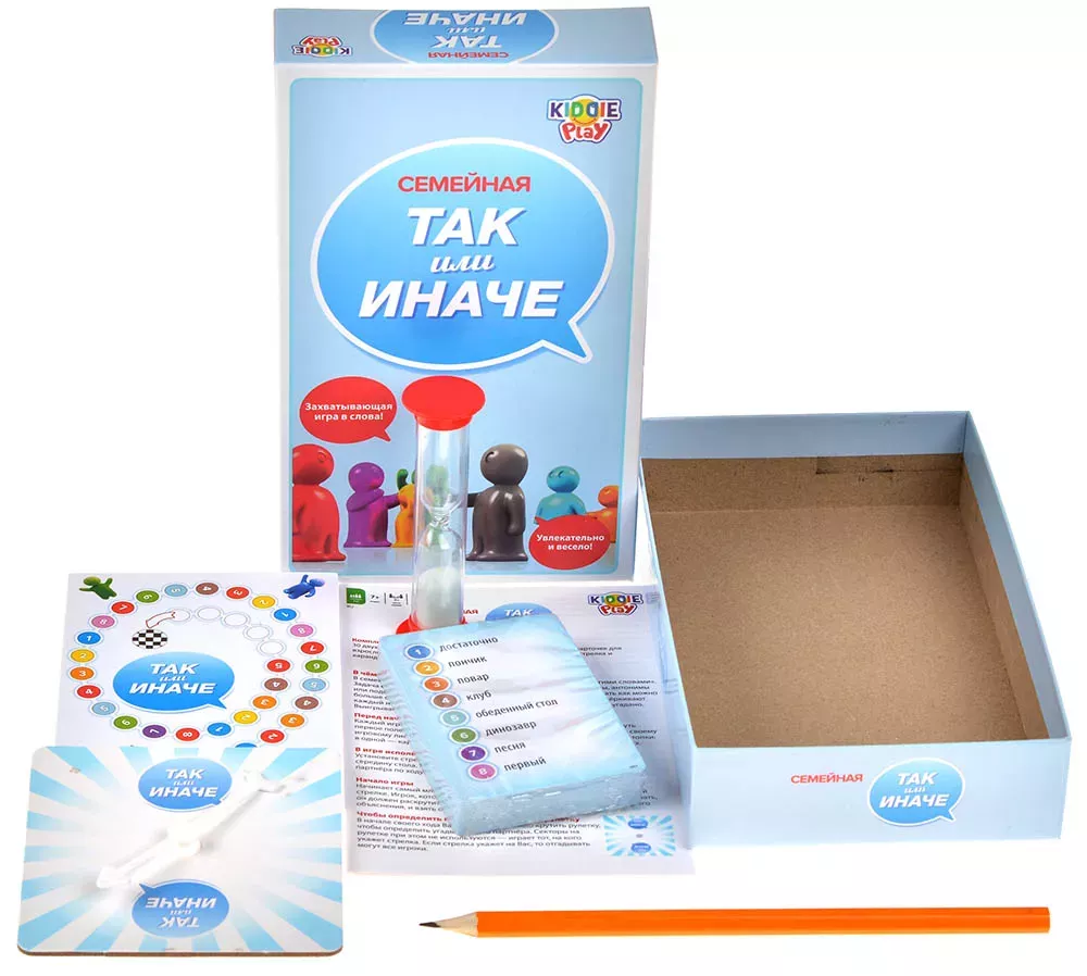 Основная задача — объяснять друг другу слова с карточек на время, не используя при этом однокоренные слова. Игра развивает семейное взаимопонимание и требует быстрого соображения, так как время отмеряют песочные часы.