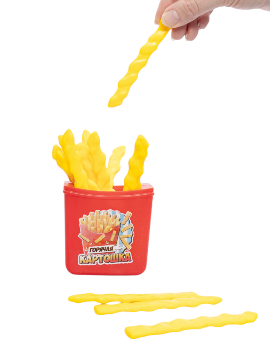 - Сложите в стаканчик картофельные палочки.