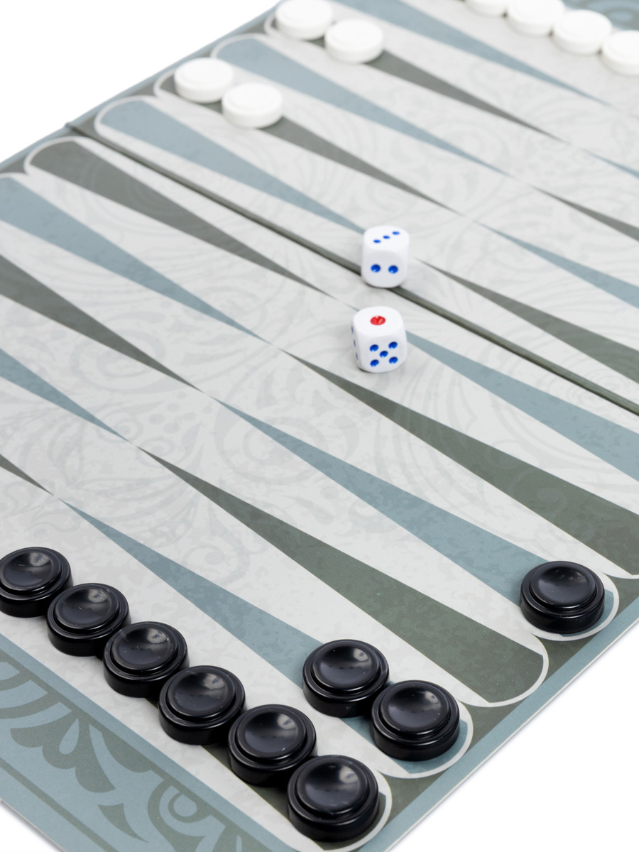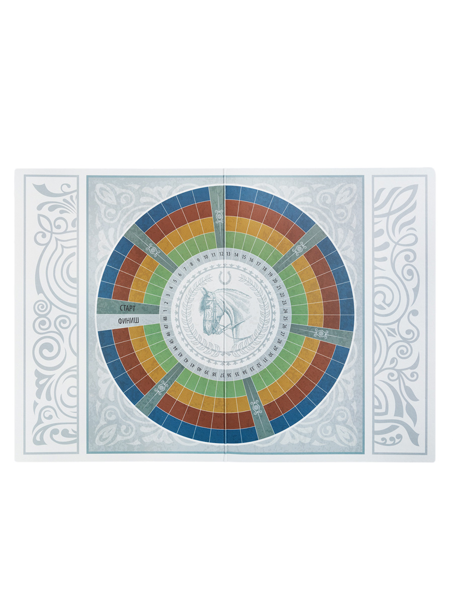 игровые поля двухсторонние (28 x 40 см) 3 шт, кубики 5 шт, цветные фишки 16 шт, шахматы, шашки, игральные карты, буклет с правилами и описанием игр