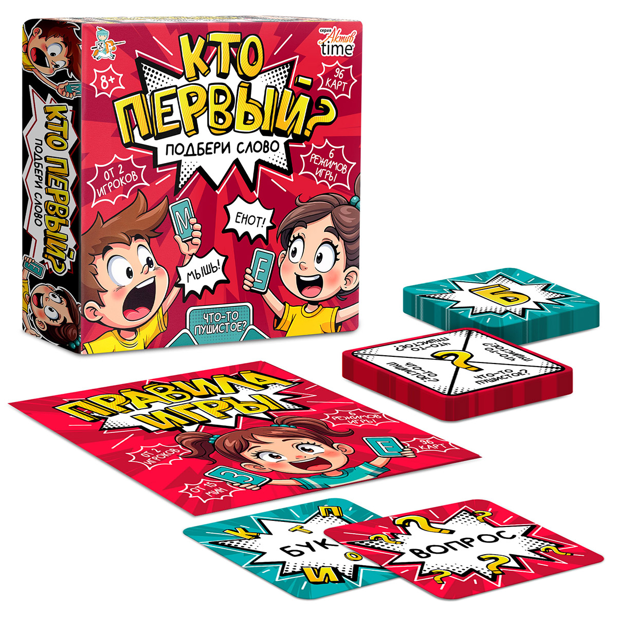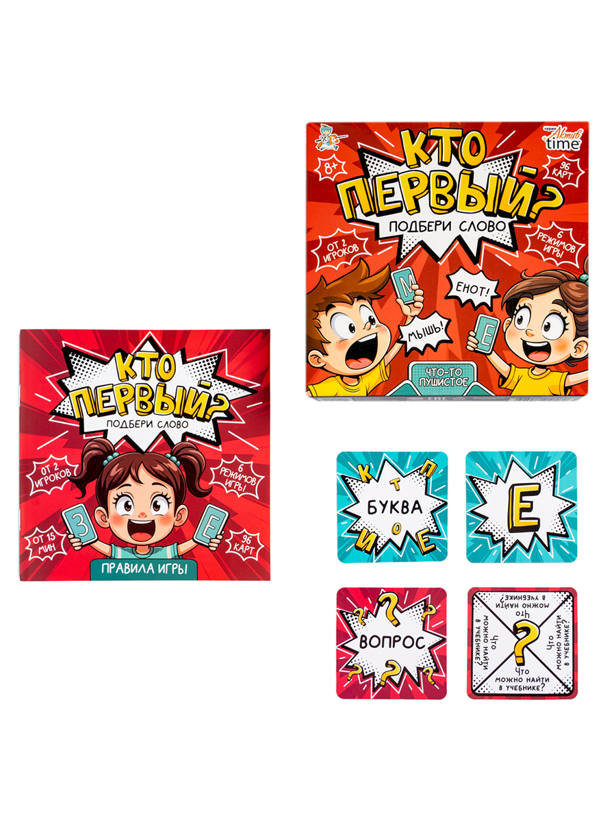 Настольная игра «Кто первый? Подбери слово» — это взрывная смесь викторины и словесного азарта!