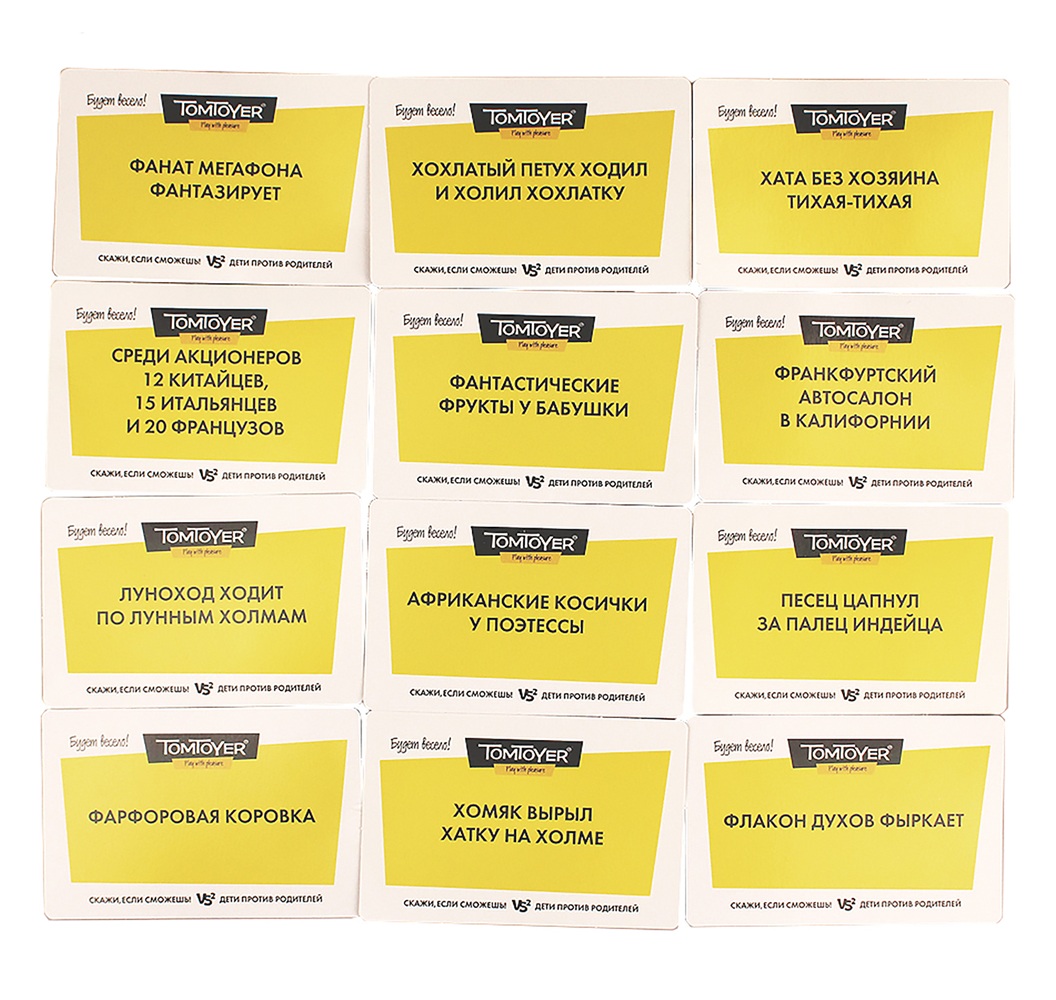 Цель игры: набрать как можно больше карточек, правильно выговаривая фразы в загубниках.