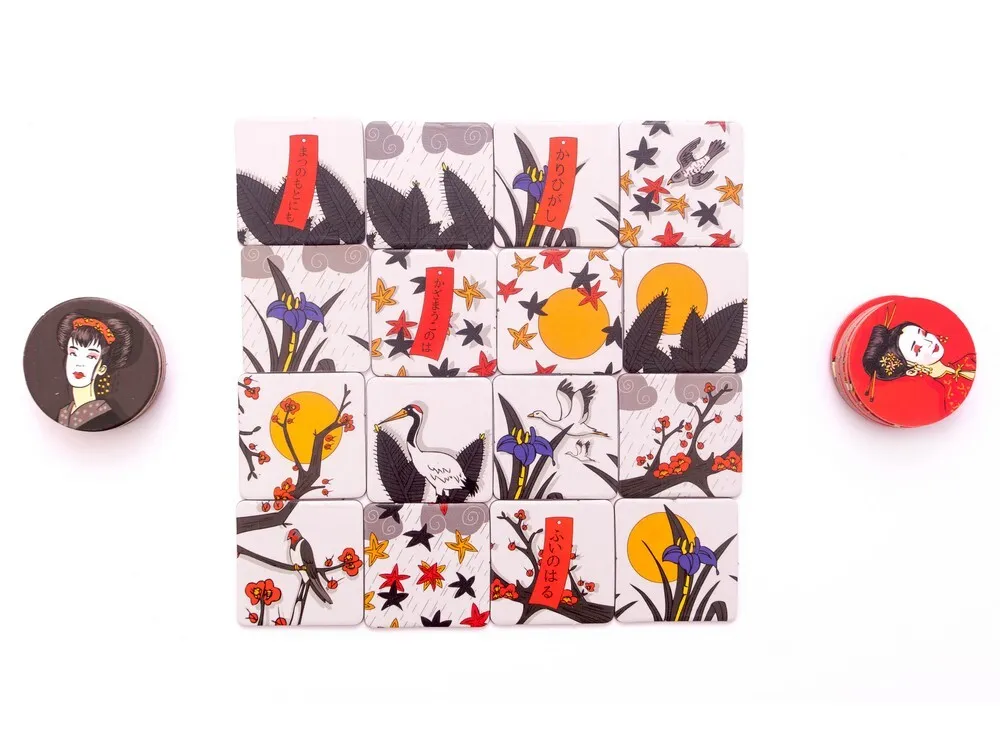 Игровое поле состоит из 16 плиток с изображениями различных элементов японского сада. Каждая из плиток содержит в себе 2 из 8 возможных символов: сакуры, ирисов, птиц и других. В начале партии плитки раскладываются в случайном порядке, формируя уникальный рисунок сада.