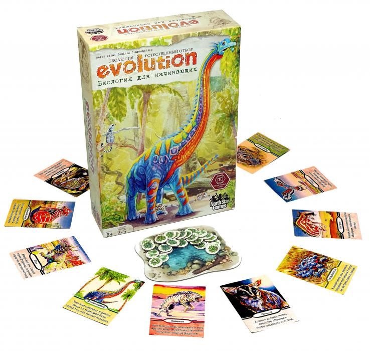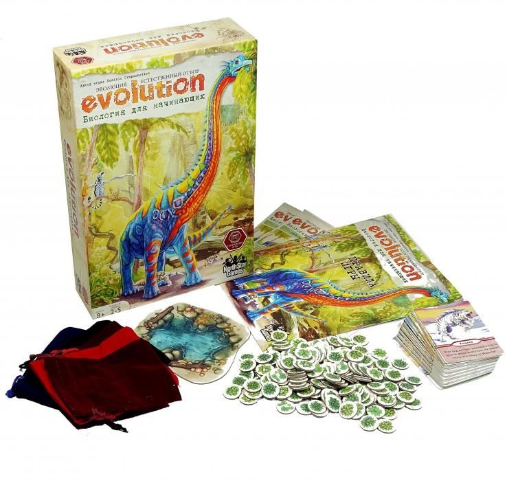 Представляем вашему вниманию настольную игру "Эволюция. Биология для начинающих"! Вам предстоит тесное знакомство с динамично меняющейся экосистемой, которая развернётся перед вашими глазами. Это несложная стратегическая игра, в которую можно играть всей семьёй. В дуэльном режиме игра становится ещё более глубокой в тактическом плане.