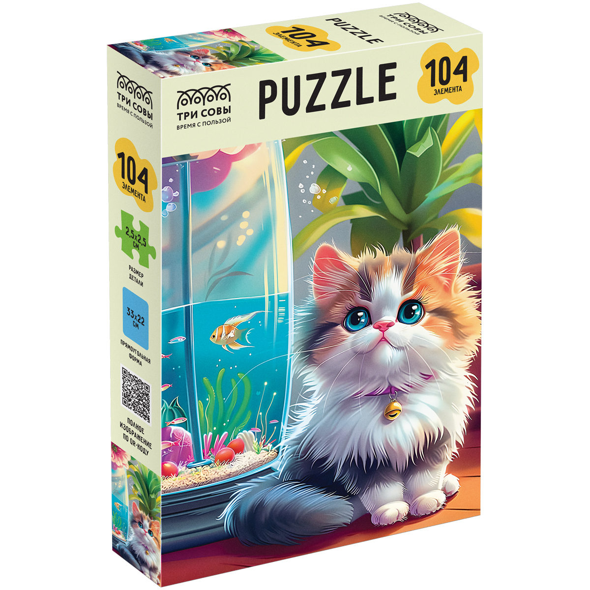 Пазл ТРИ СОВЫ «Котенок у аквариума» из 104 элементов станет отличным способом весело провести вечер. Картинка имеет вертикальную ориентацию, в собранном виде размер составляет 33*22 см. Пазлы упакованы в прочную красивую коробку и станут отличным подарком! Изготовлены в России.