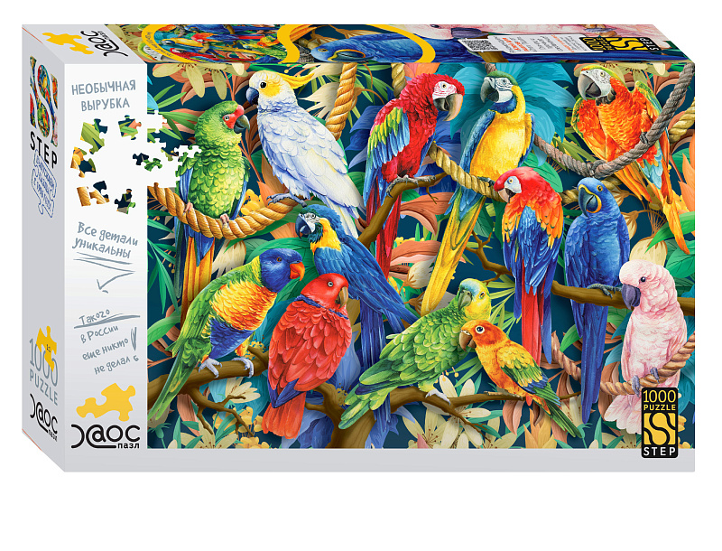 Погрузитесь в буйство красок экзотических джунглей с нашим пазлом "Пестрый мир". В этом уникальном изделии из 1000 элементов собраны различные виды попугаев, окружённых сочной зеленью, создающей впечатление настоящего тропического рая.