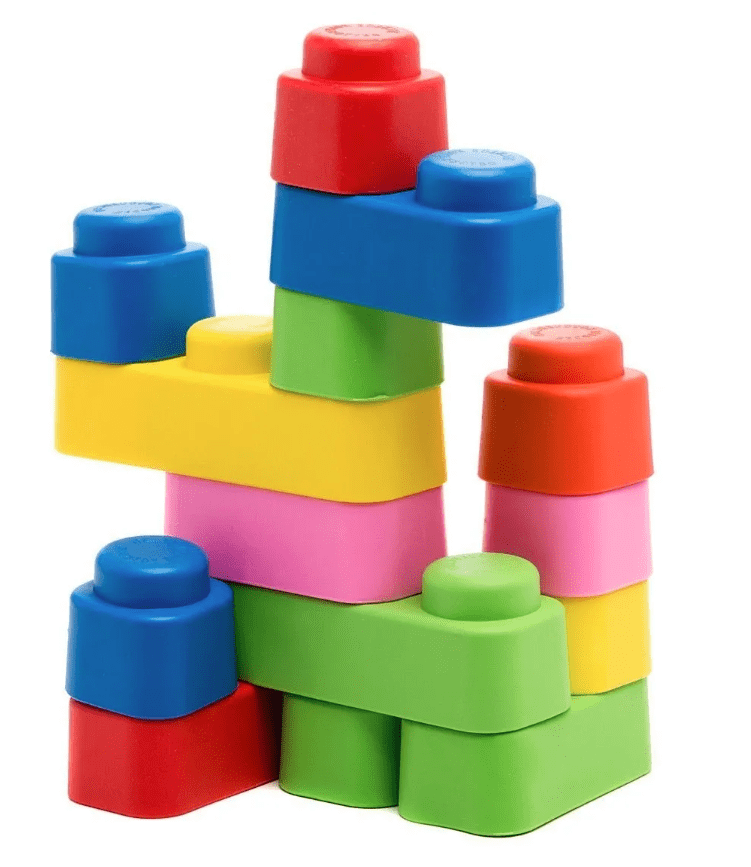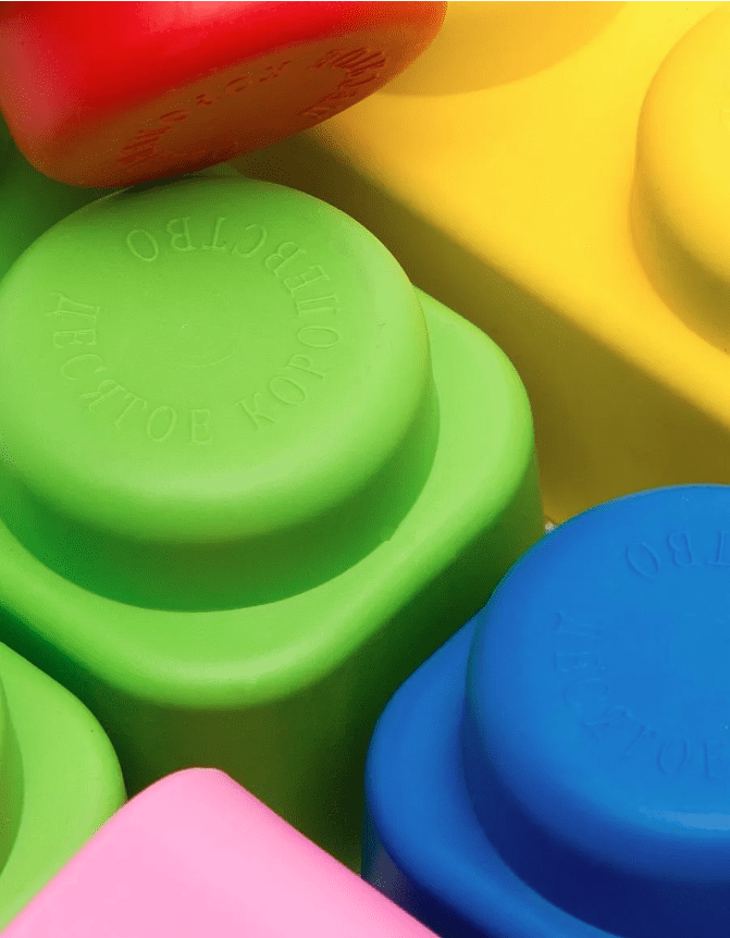 - Безопасный материал: Детали выполнены из ТЭП (термоэластопласта), который применяется в пищевой промышленности. Материал не содержит фталатов и бисфенола-А, поэтому кирпичики можно безопасно пробовать «на зуб».