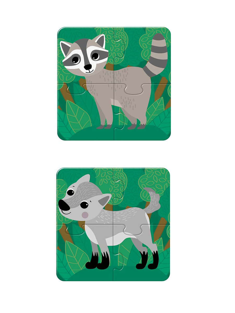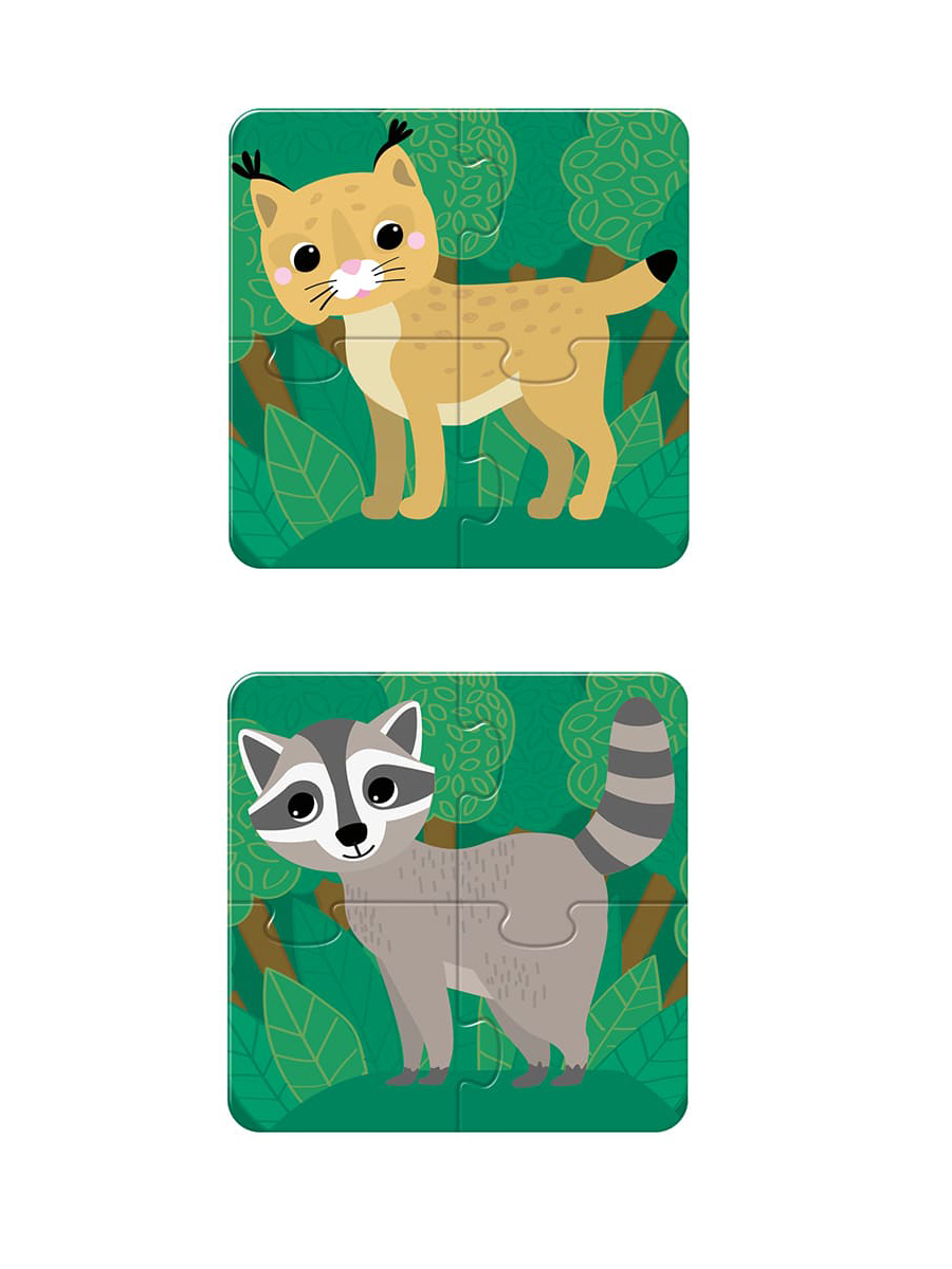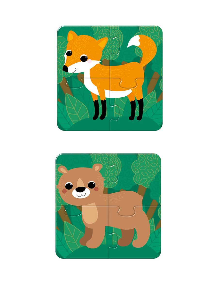 - Когда малыш освоит принцип пазлового замка, предложите ему самостоятельно собрать лисичку, мишку или другого лесного жителя.