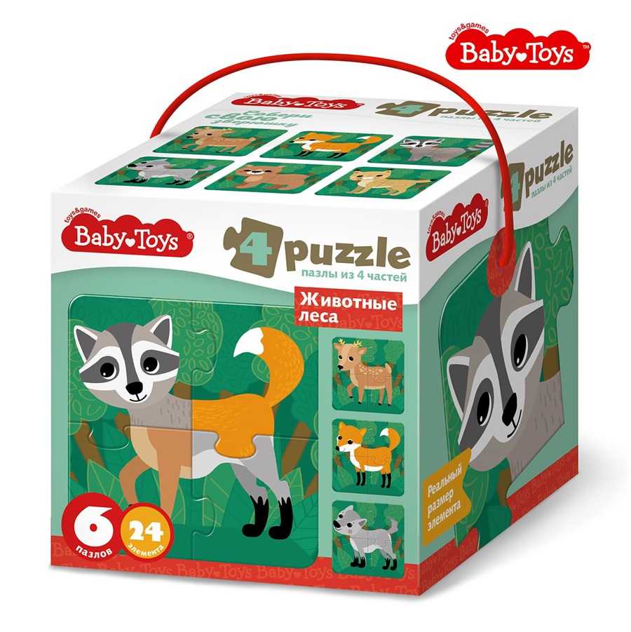 - 24 крупных элемента (6 картинок по 4 пазла в каждой).