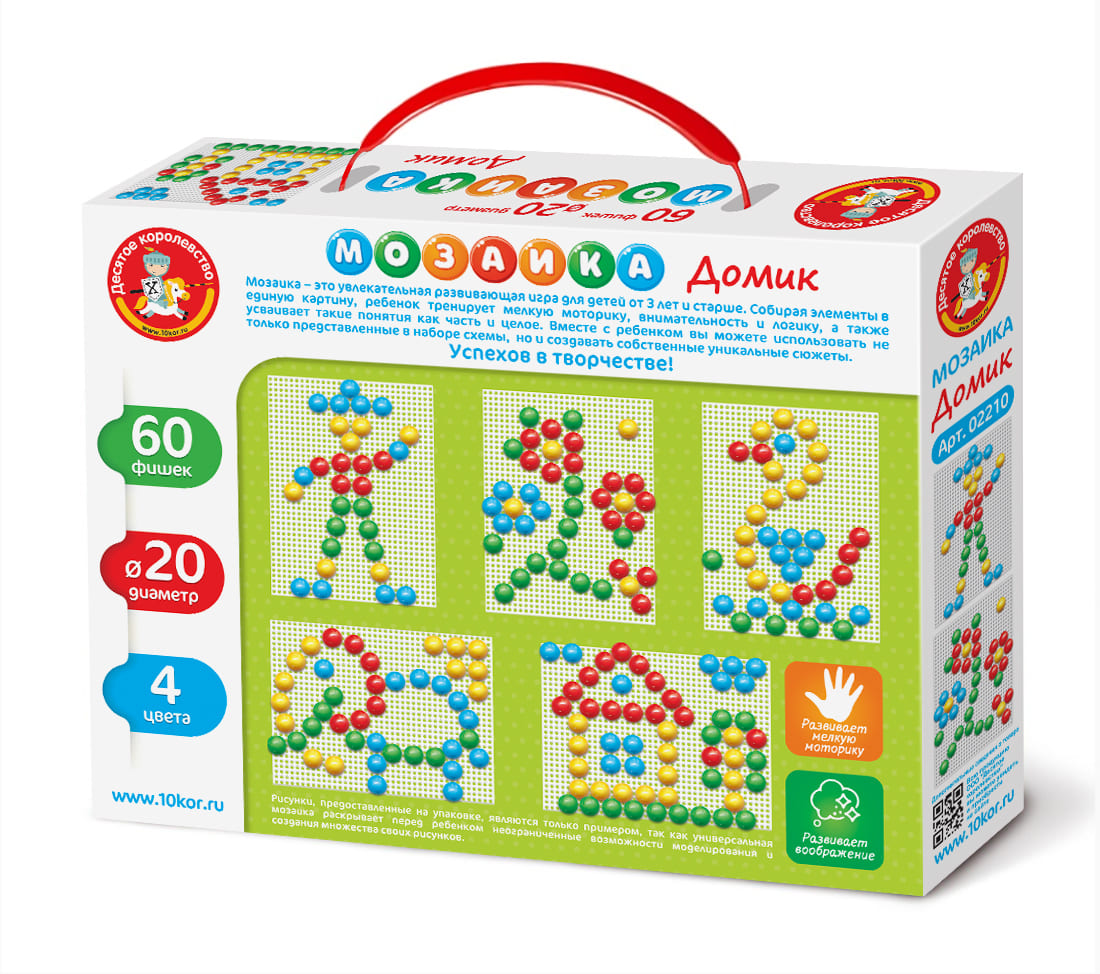 Классическая мозаика с крупными деталями — это идеальный инструмент для развития творческих способностей малыша. Собирая красочные узоры, ребёнок учится аккуратности, усидчивости и тренирует мелкую моторику рук.