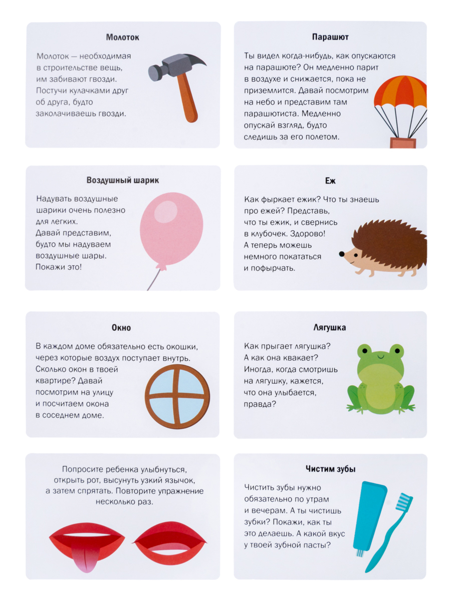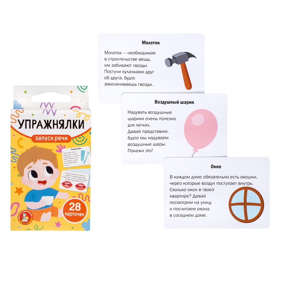 Каждая из 28 карточек снабжена красочной картинкой и понятным описанием, что делает выполнение гимнастики доступным и интересным даже для самых маленьких. Регулярные занятия способствуют формированию четкой дикции, укреплению мышц языка и губ, а также создают прочную базу для дальнейшего развития речи.