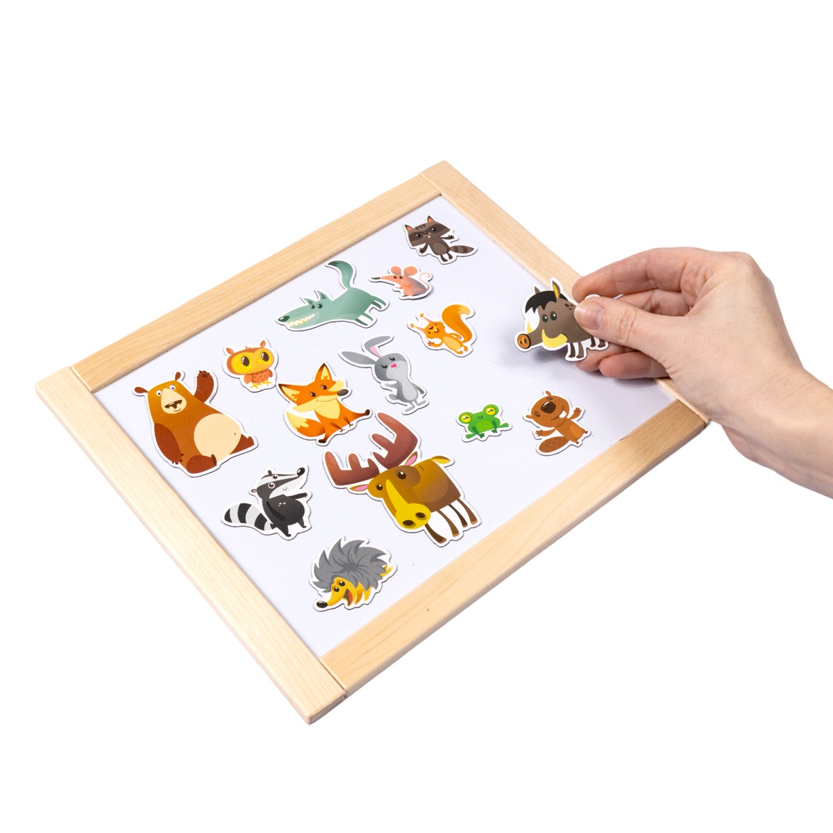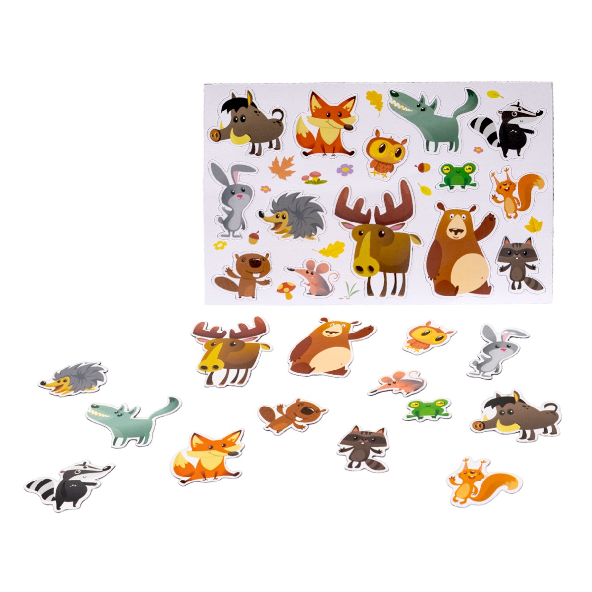 Магниты «Лесные жители» — это прекрасная возможность для ребенка познакомиться с обитателями леса в игровой форме. В набор входят 14 фигурок животных, которые легко вынимаются из листа-рамки и надежно крепятся к любой металлической поверхности, например, к дверце холодильника. Игра с этими магнитами помогает не только изучать фауну, но и развивать творческие способности: фигурки можно использовать как персонажей для домашних спектаклей.